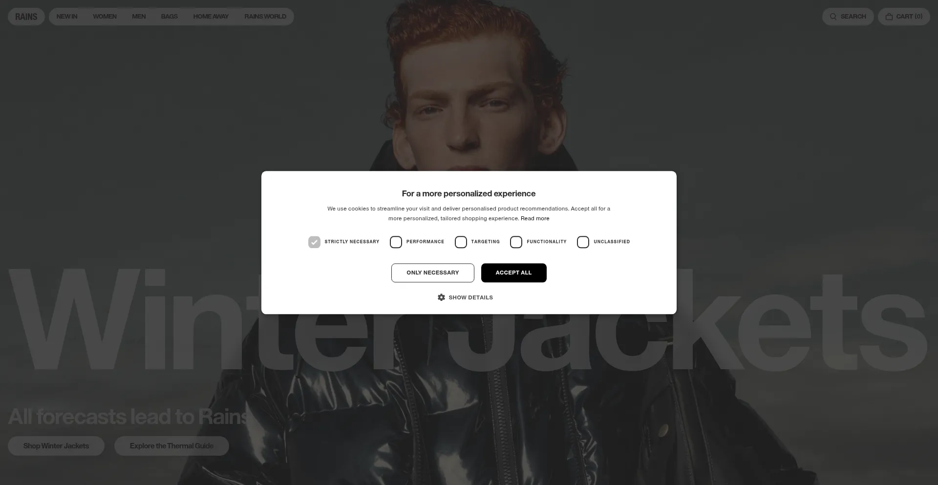The website implements cookie consent mechanisms in compliance with privacy regulations such as GDPR or CCPA. This demonstrates that rains.com adheres to data protection standards and provides users with control over personal data collection practices.