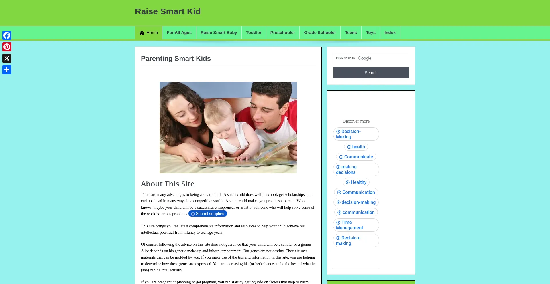 The raisesmartkid.com website employs search engine optimization (SEO) techniques to improve its visibility and ranking in search engine results pages (SERPs).