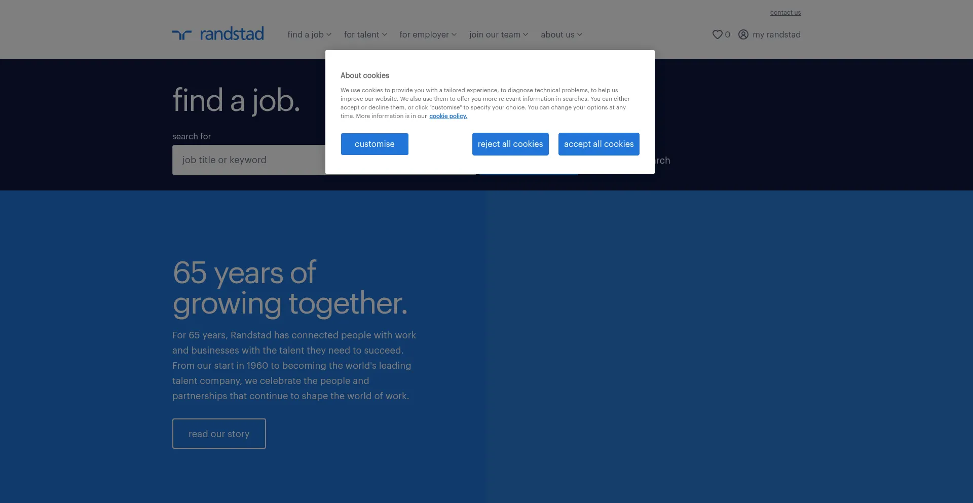 The website implements cookie consent mechanisms in compliance with privacy regulations such as GDPR or CCPA. This demonstrates that randstad.com.sg adheres to data protection standards and provides users with control over personal data collection practices.