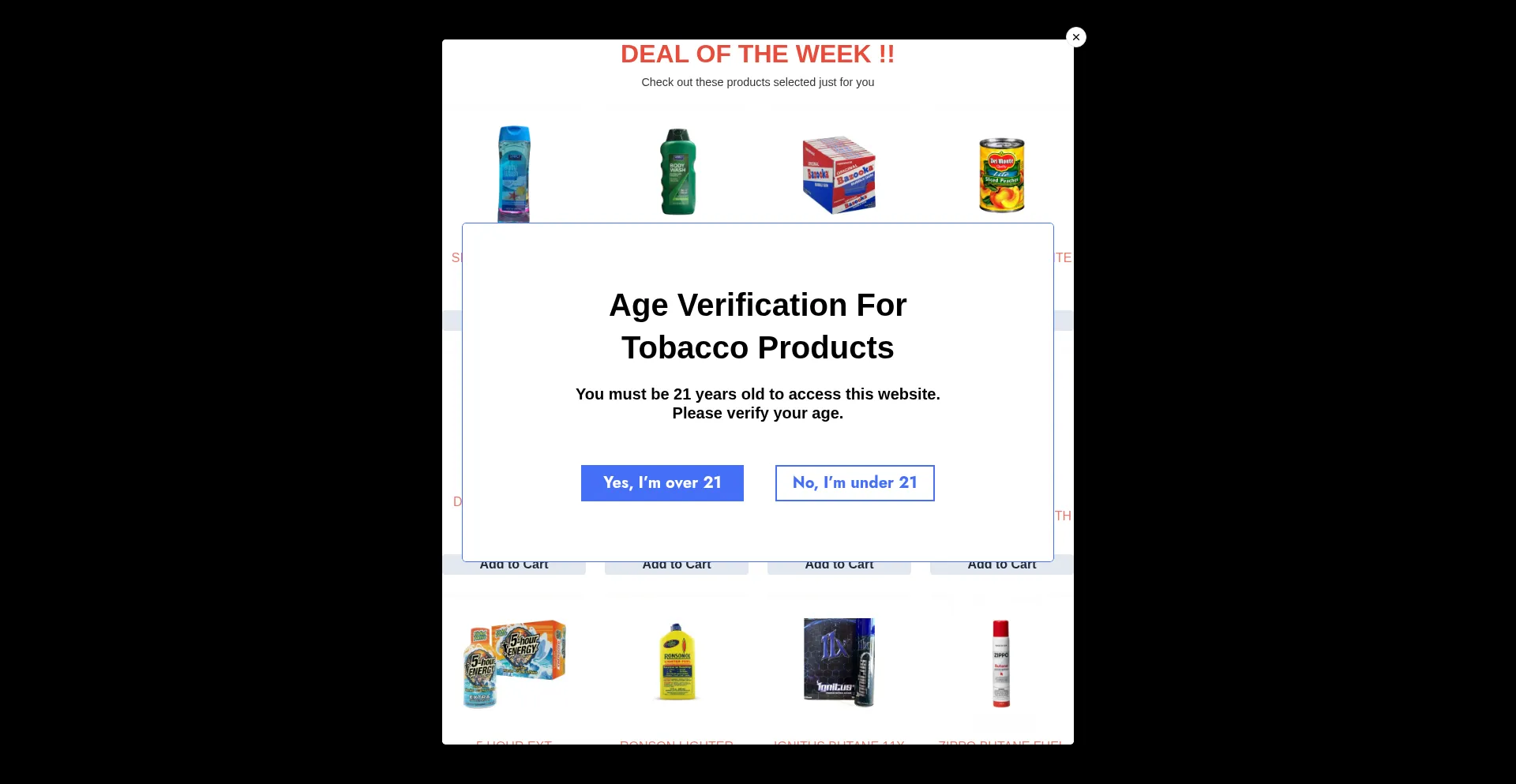 Shopping Deals Uses Free eCommerce Engine Smoking Registration Form Wholesale Shopify Platform Google Tag Manager AI-generated Text Established Domain