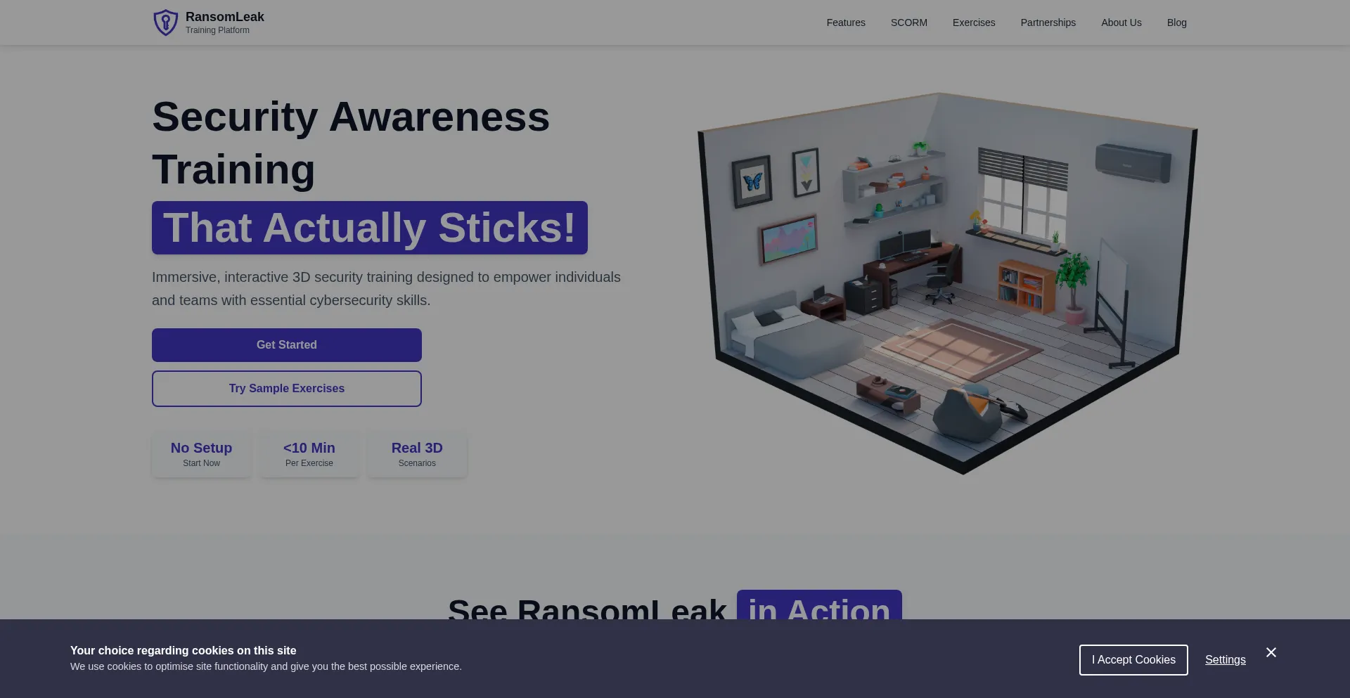 RansomLeak is an interactive 3D security awareness training platform built to use in your LMS via SCORM.