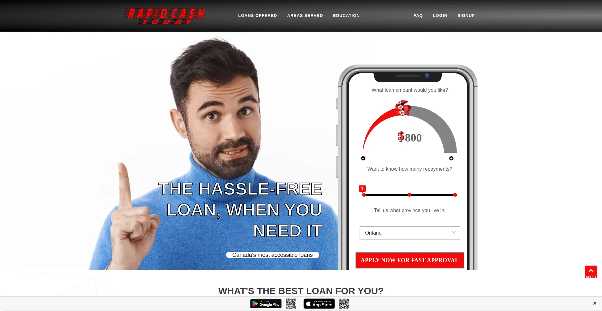 The rapidcashtoday.ca website offers a mobile application for Android devices, indicating expanded platform presence beyond web-based services.