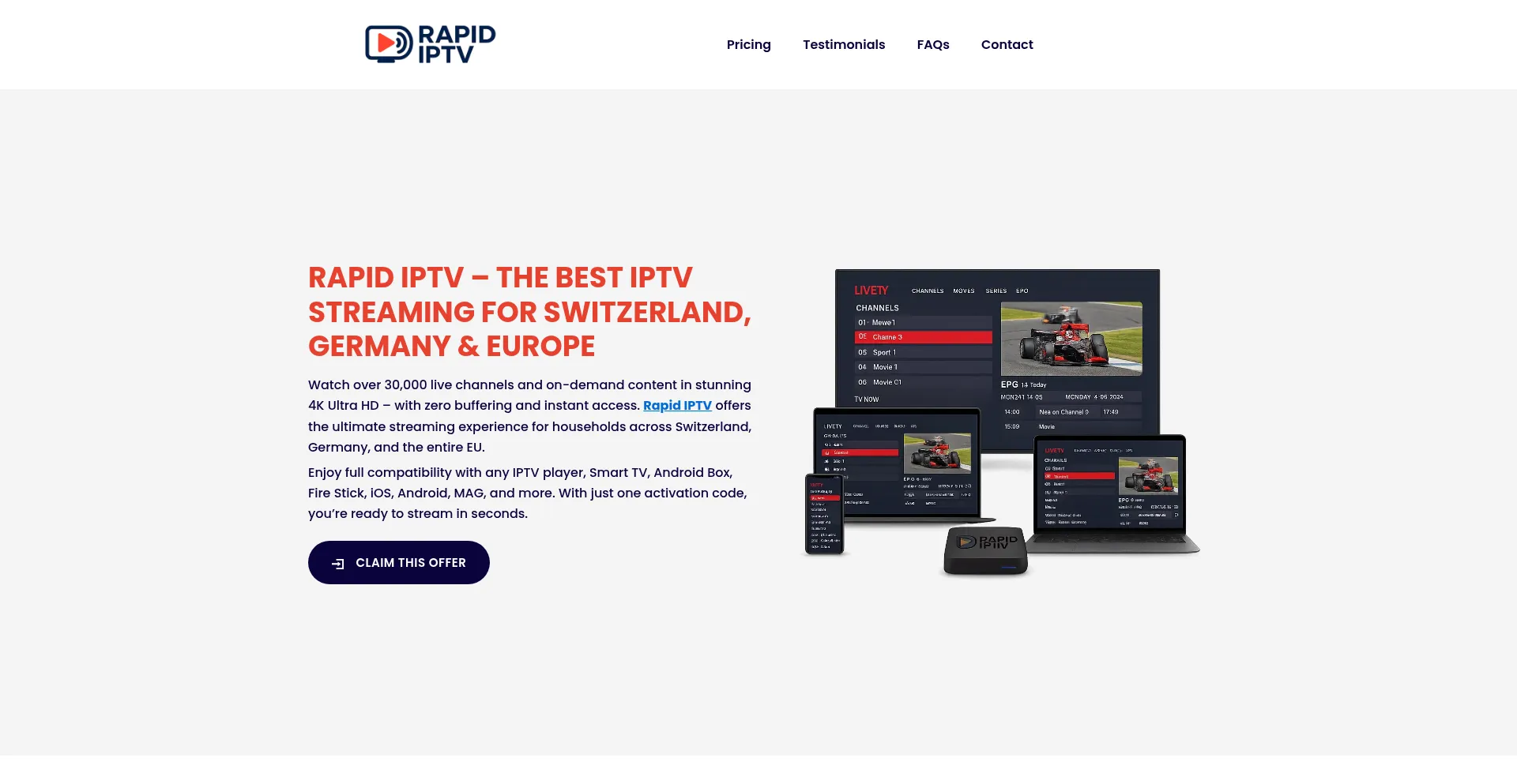 Stream 30,000+ live channels & VOD in UHD 4K with Rapid IPTV. No buffering. Best in Europe. Works on all devices. Free trial, no contract.