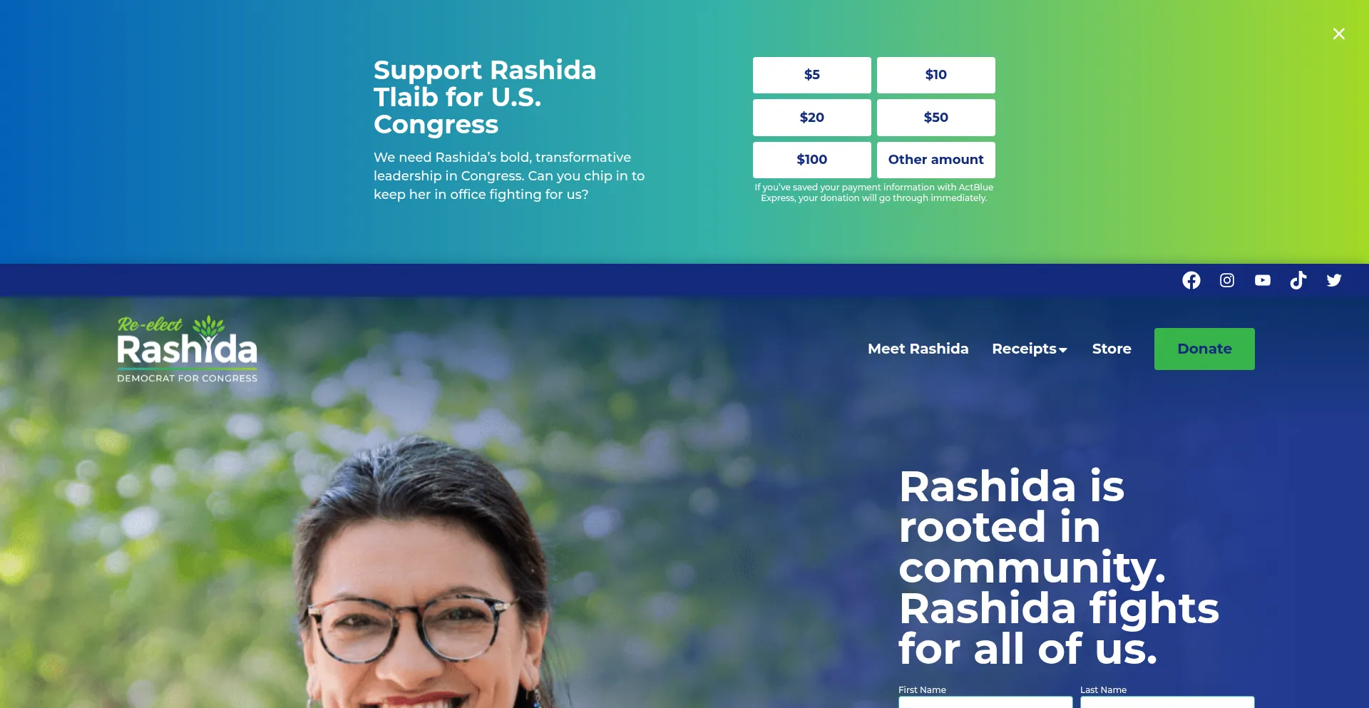 www.google-analytics.com www.instagram.com fonts.googleapis.com connect.facebook.net cdn.jsdelivr.net twitter.com pixel.sitescout.com store.rashidaforcongress.com secure.actblue.com middleseat.co +7 more