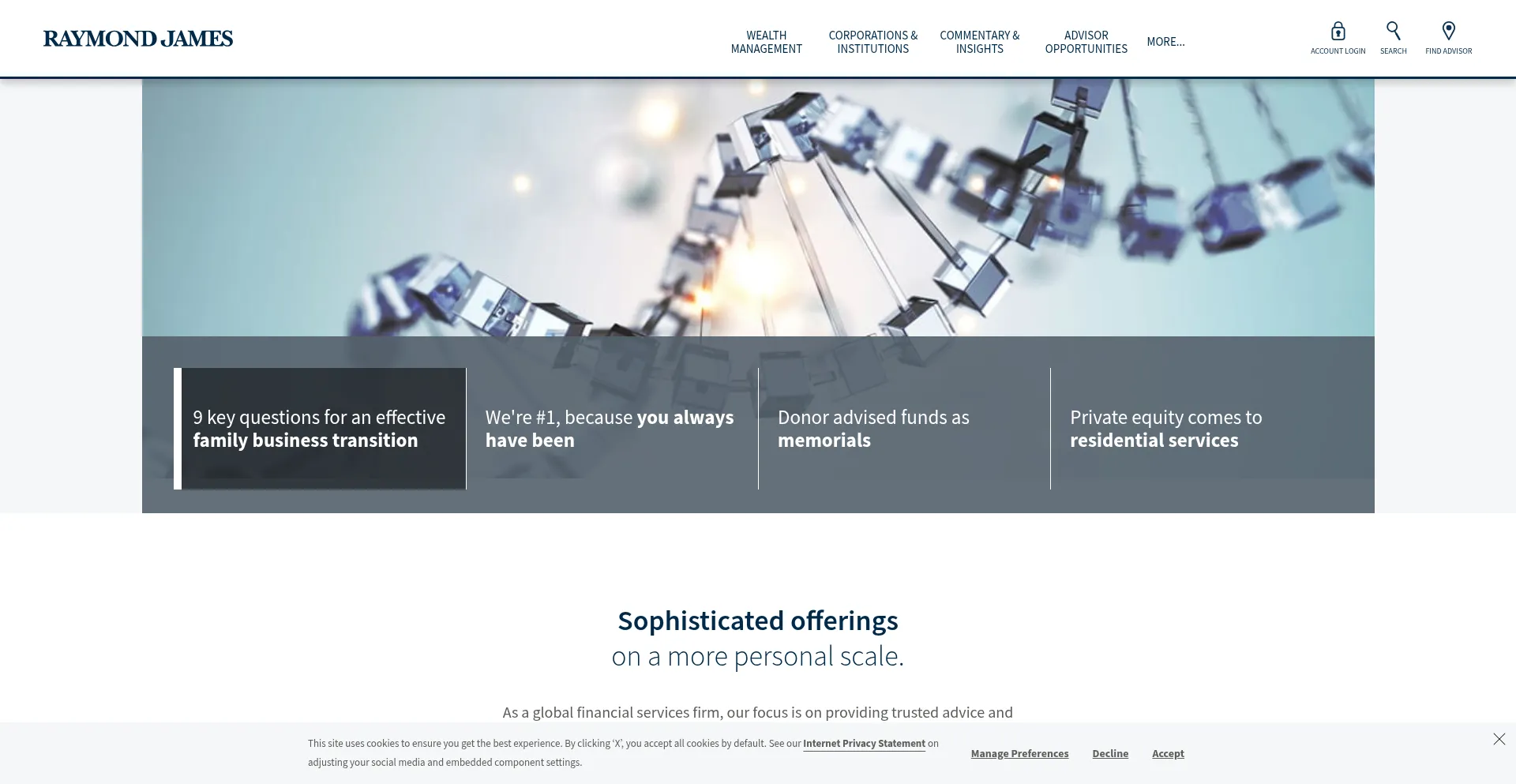 The raymondjames.com website provides financial services including investment management, wealth advisory, or financial planning solutions. Services may encompass portfolio management, investment opportunities, financial consulting, or asset growth strategies for individual and institutional clients.