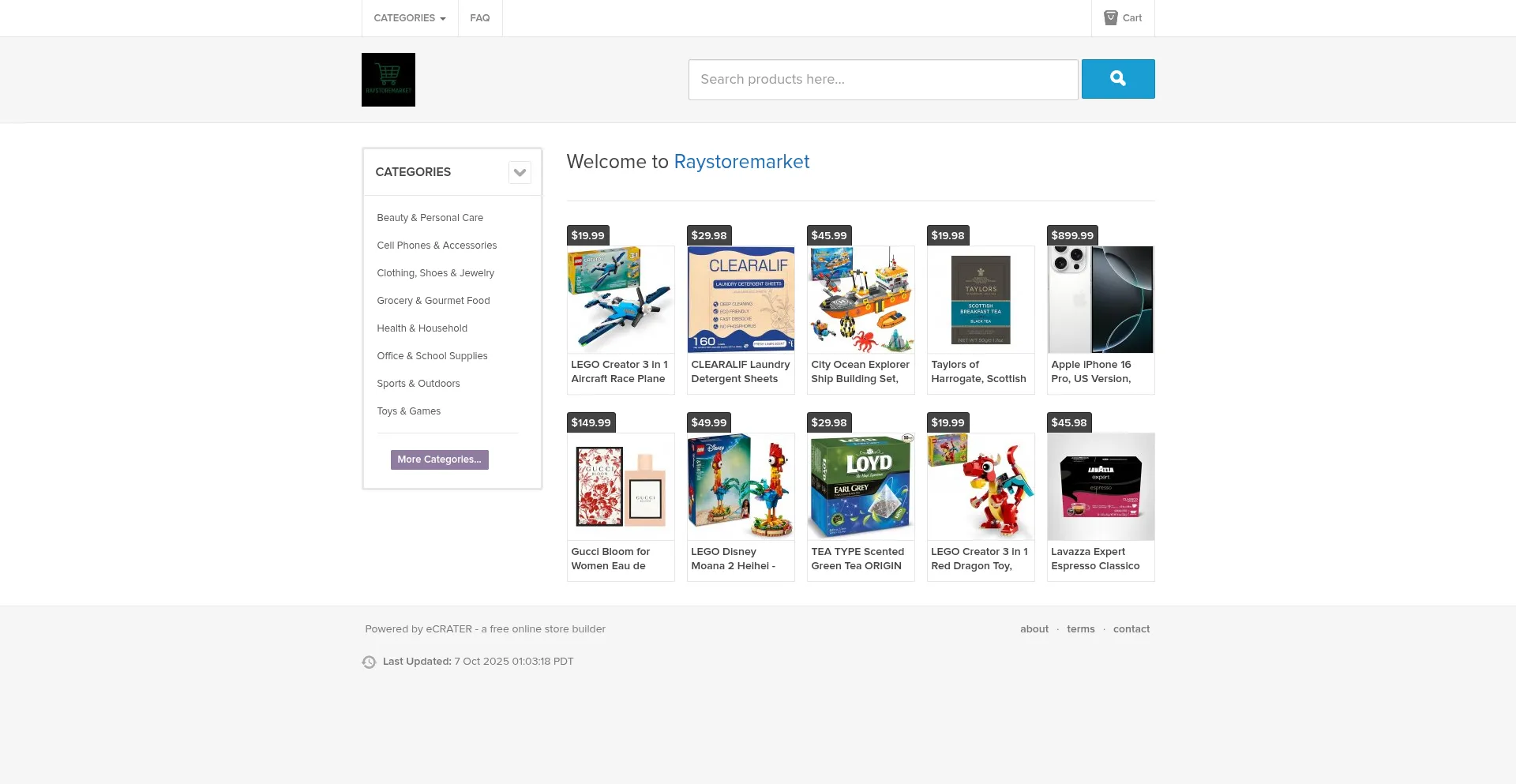 Raystoremarket.ecrater.com operates as a suspicious website with multiple red flags that compromise its trustworthiness and user safety. The platform exhibits concerning characteristics including misleading information, questionable operational practices, or potential malware distribution that poses significant risks to visitors.