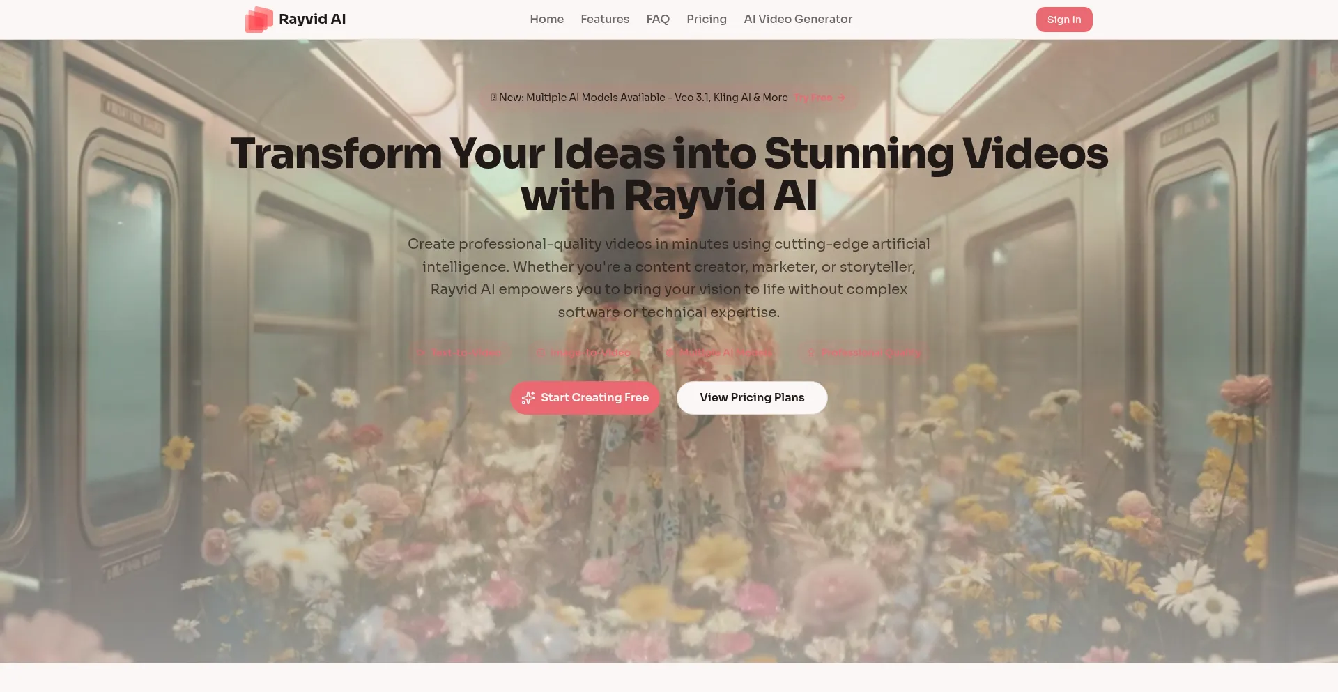 Rayvid AI | Free Credits - Video Gen with Veo 3.1, Seedance & Kling