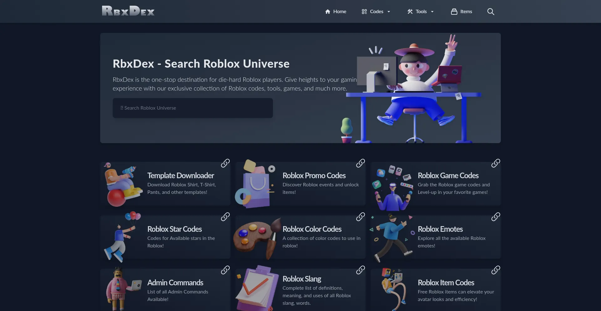 RbxDex will make you dive into the exciting world of Roblox with our exclusive collection of Roblox promo codes, tools, games, and much more.