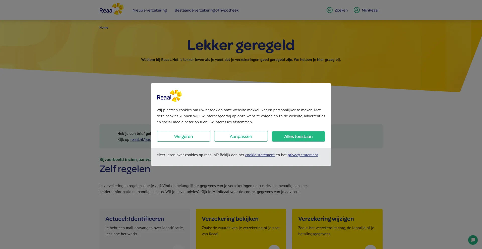 The website implements cookie consent mechanisms in compliance with privacy regulations such as GDPR or CCPA. This demonstrates that reaal.nl adheres to data protection standards and provides users with control over personal data collection practices.