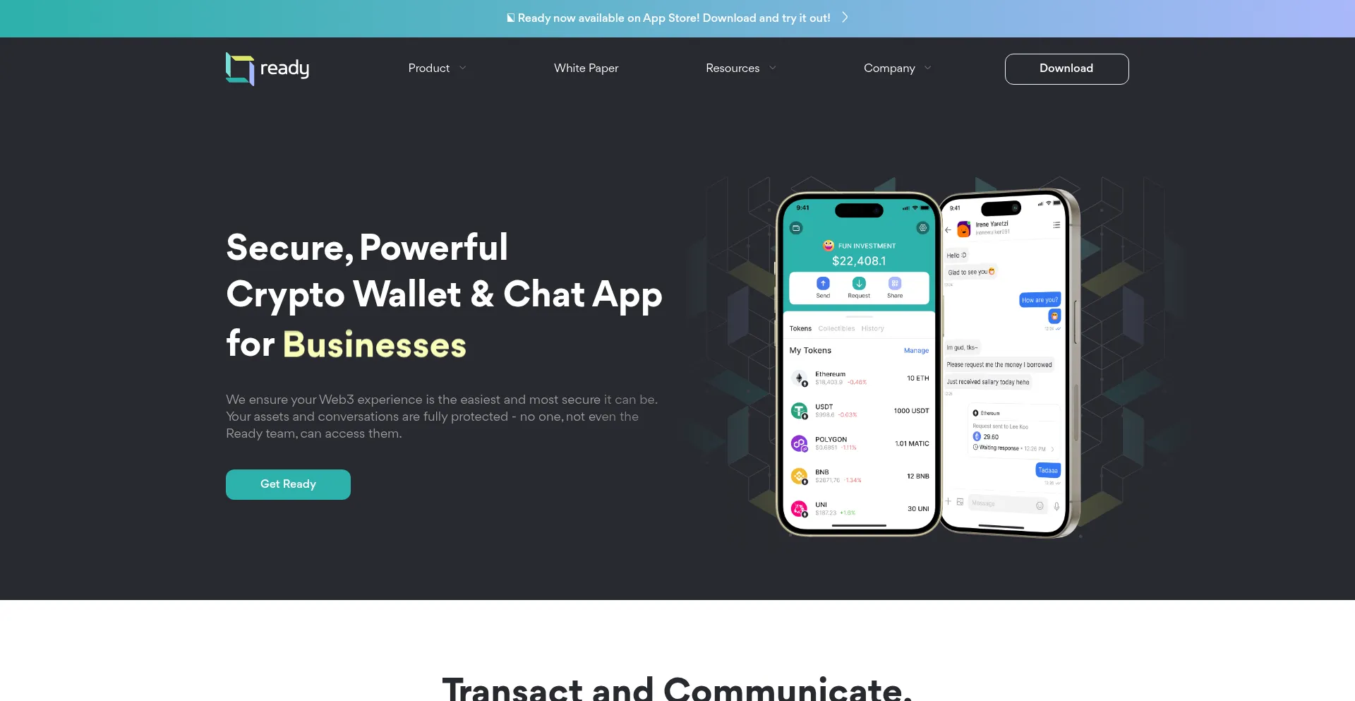 The ready.io website offers a mobile application for Android devices, indicating expanded platform presence beyond web-based services.