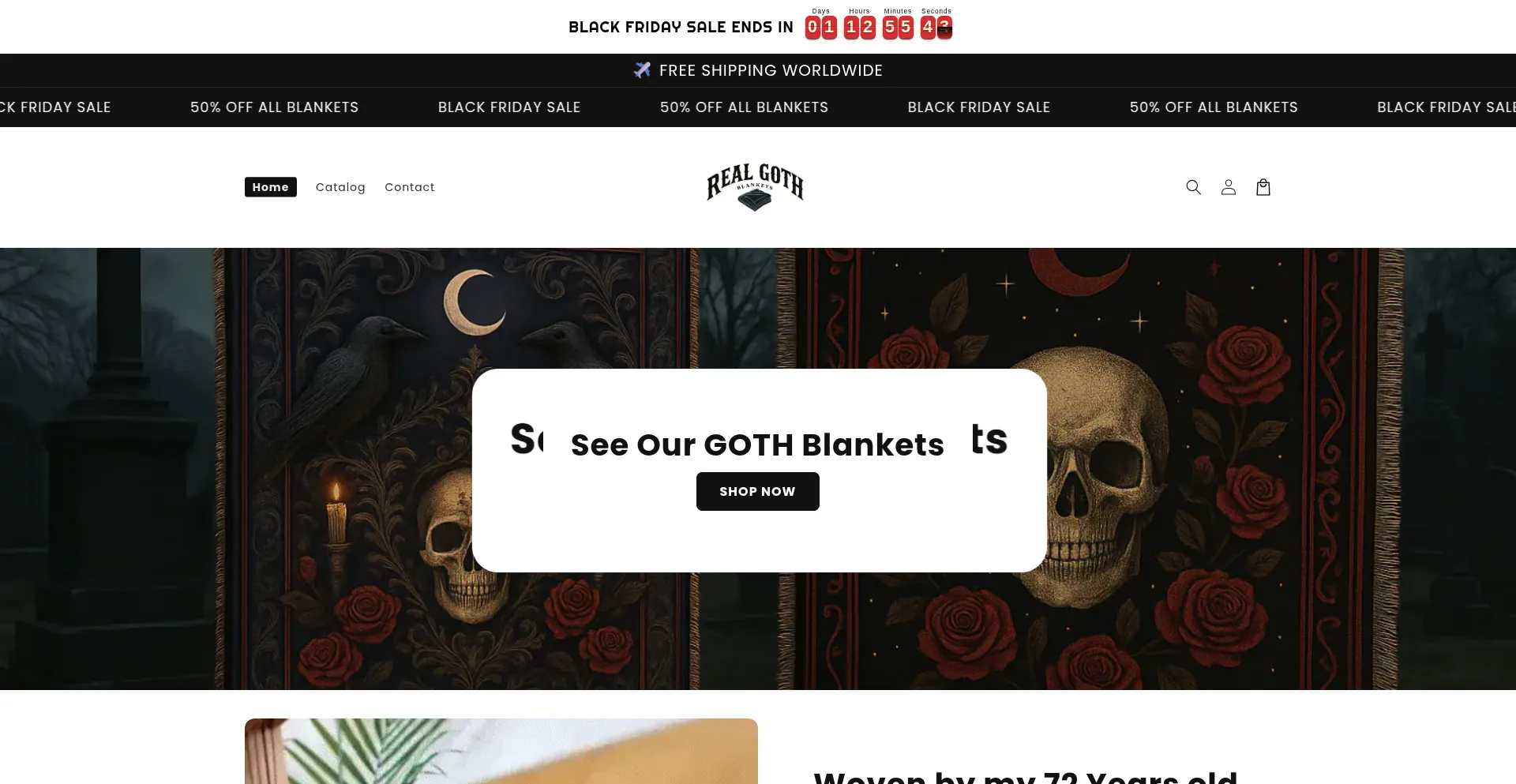 Our analyzer determines that website realgothblankets.store is using Shopify CMS. Shopify is a popular e-commerce platform, powering around 4.4% of websites globally.
