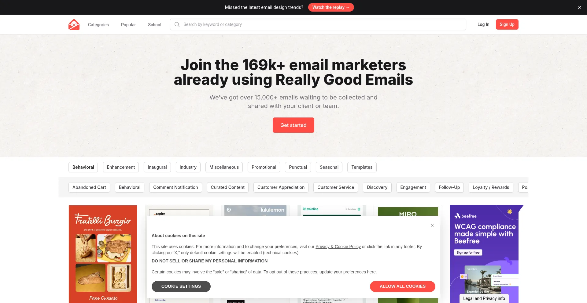The website implements cookie consent mechanisms in compliance with privacy regulations such as GDPR or CCPA. This demonstrates that reallygoodemails.com adheres to data protection standards and provides users with control over personal data collection practices.