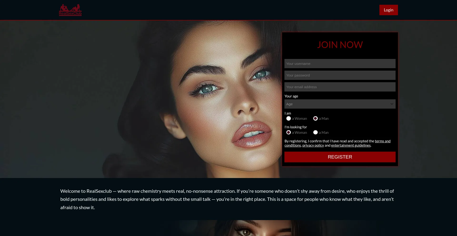 Realsexclub.com operates a dating platform classified as suspicious due to untrustworthy operational practices including fake user profiles, catfishing schemes, and potential fraud vectors targeting users seeking romantic connections.