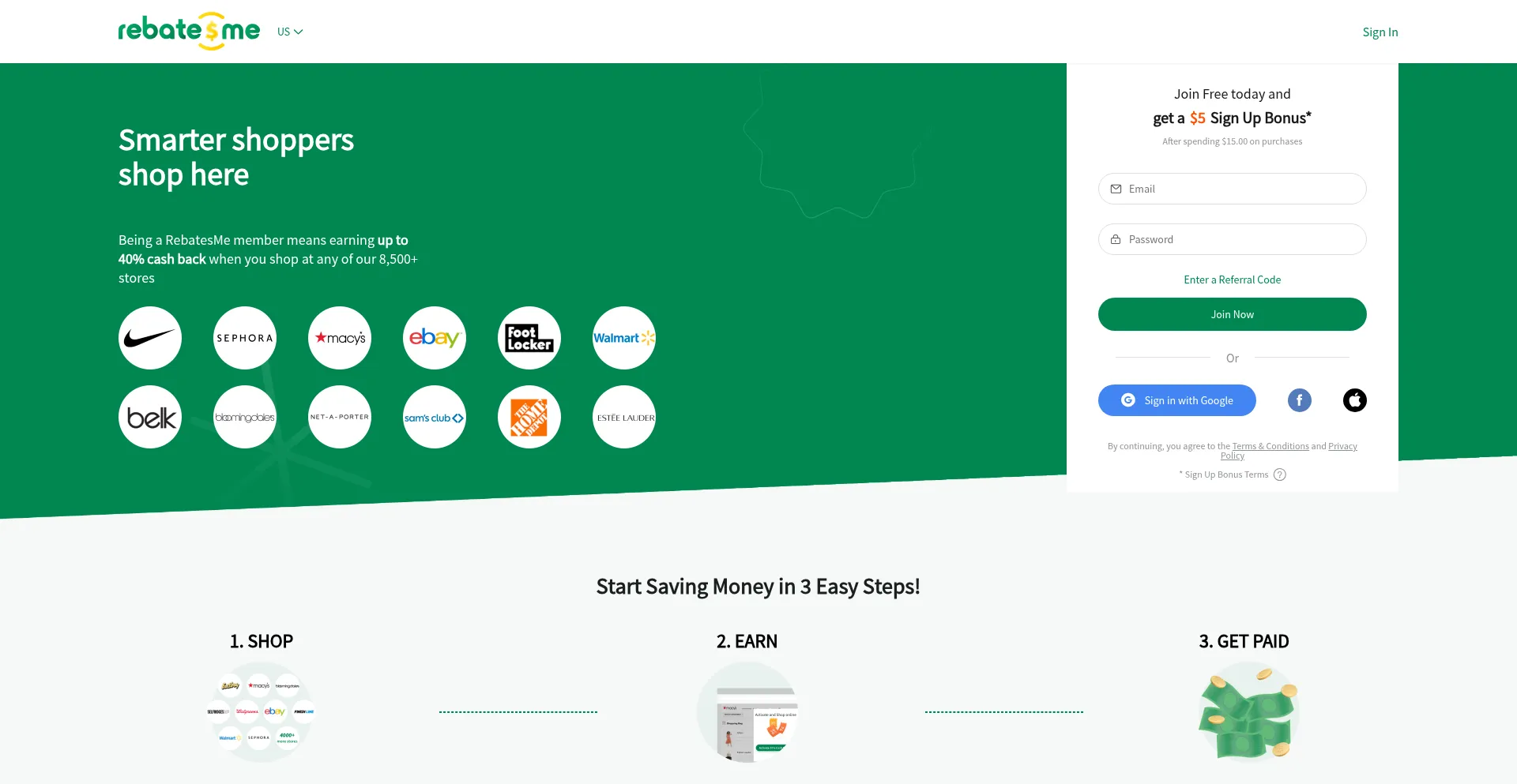 Join RebatesMe and earn up to 40% cash back at 8,500+ stores worldwide. Enjoy exclusive deals, discounts, and smarter savings with every purchase.