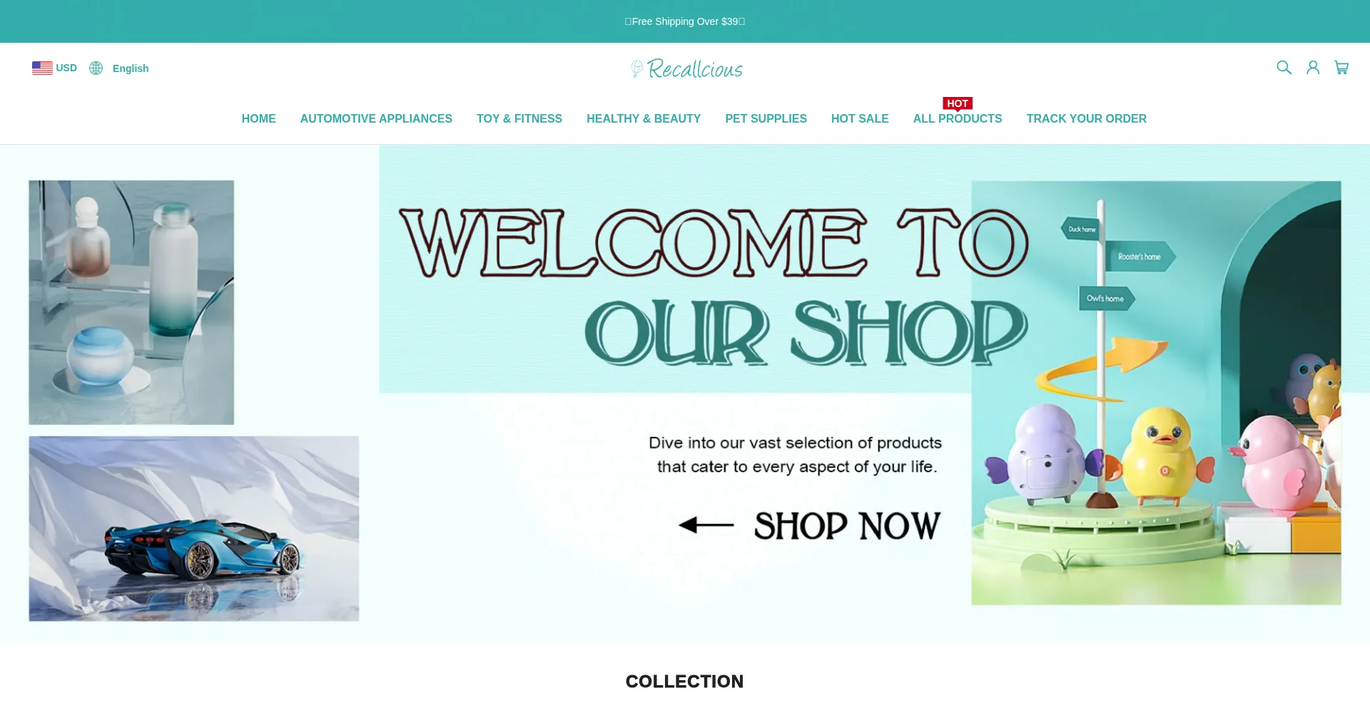 Analysis indicates that recallcious.com operates as an e-commerce platform facilitating online transactions for goods or services. The website implements shopping cart functionality, payment processing systems, and product catalog features typical of commercial retail operations.