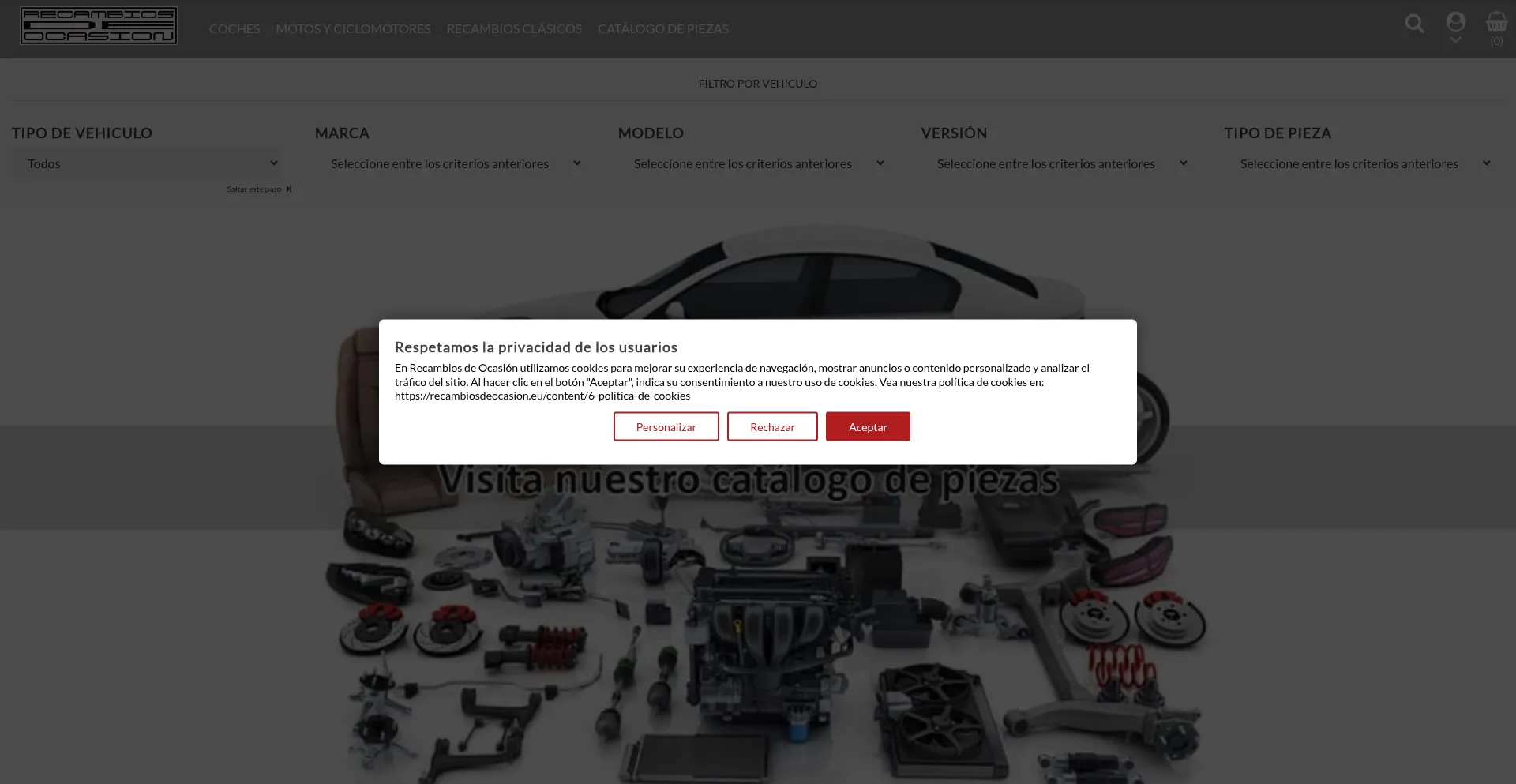 Venta online de recambios de segunda mano para coches, motos y todo tipo de vehículos. Piezas usadas procedentes de desguace. Repuestos baratos comprobados y garantizados. Env�...