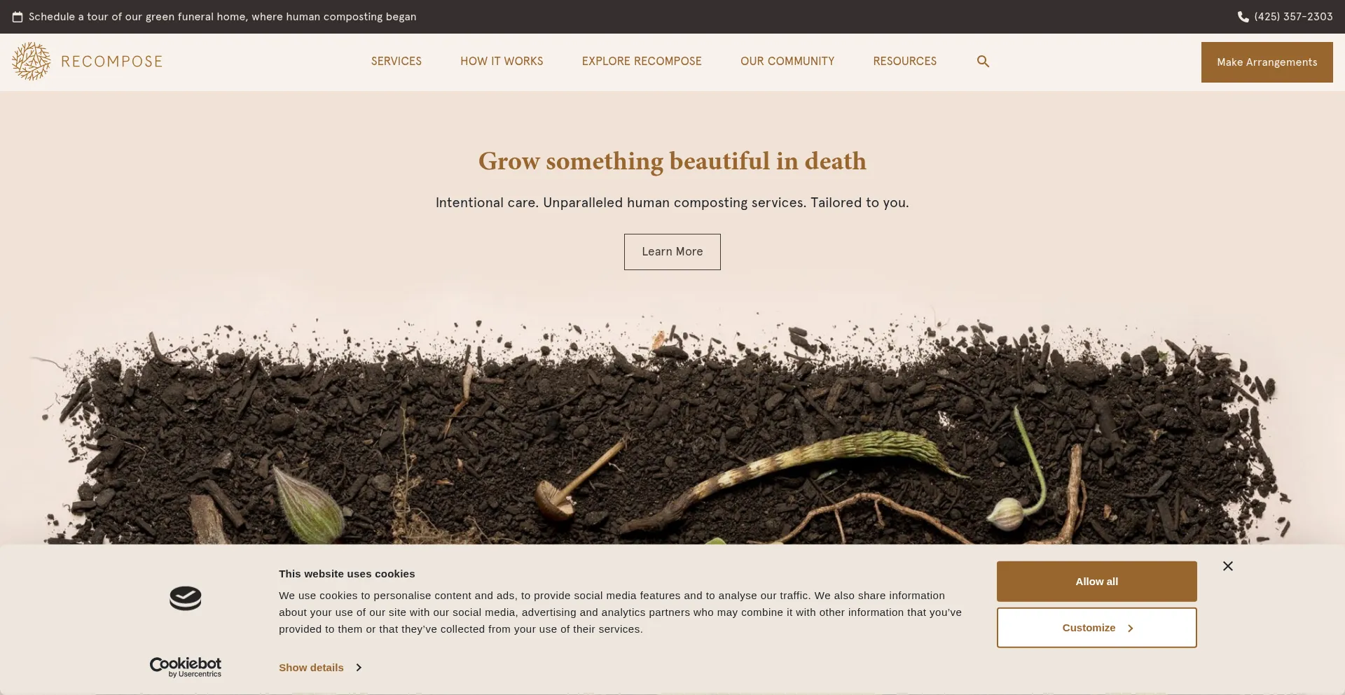 The website implements cookie consent mechanisms in compliance with privacy regulations such as GDPR or CCPA. This demonstrates that recompose.life adheres to data protection standards and provides users with control over personal data collection practices.