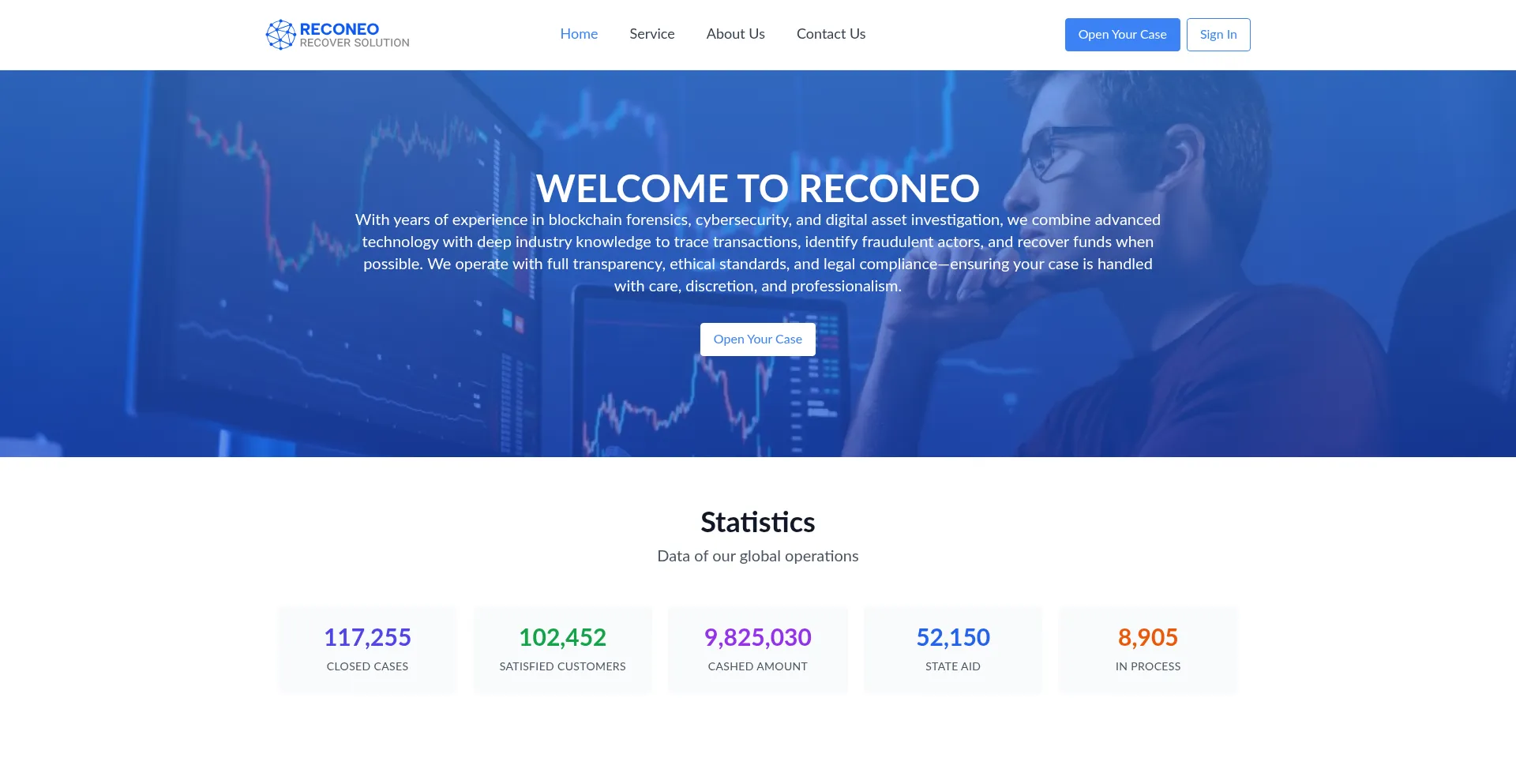 The website reconeo.com advertises fund recovery services for lost or stolen assets. While some operate on contingency fee structures, others may require upfront payments, which can indicate fraudulent operations. Verify credentials and regulatory compliance before engaging such services.