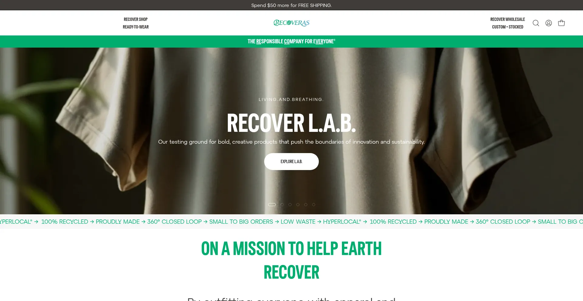 Your Shirt Has a Mission. At Recover Brands, we give discarded materials like water bottles a second life as premium, sustainable clothing. Feel good in gear that does good.