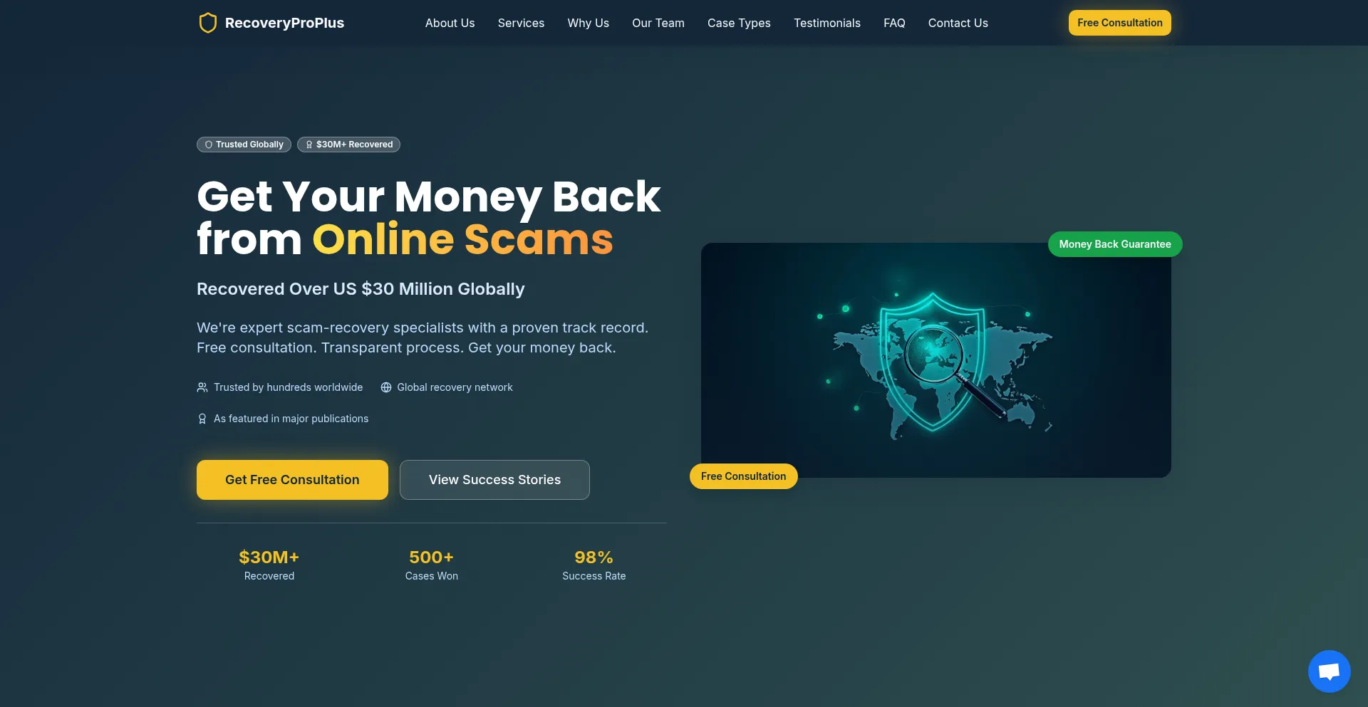 Professional scam recovery specialists. Recovered over $30 million for fraud victims worldwide. Free consultation. Transparent process. Money-back guarantee.