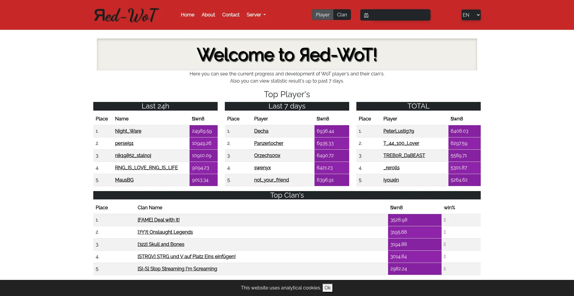 World of Tanks Statistics Tracker | Red-WoT WN8 and Player Stats