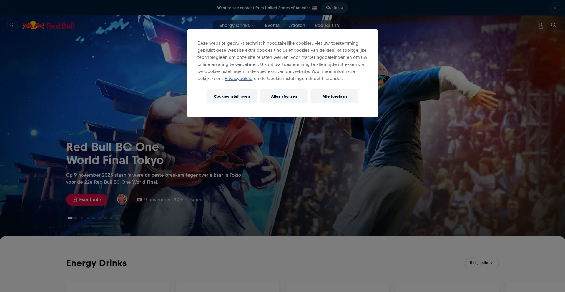 The website implements cookie consent mechanisms in compliance with privacy regulations such as GDPR or CCPA. This demonstrates that redbull.nl adheres to data protection standards and provides users with control over personal data collection practices.