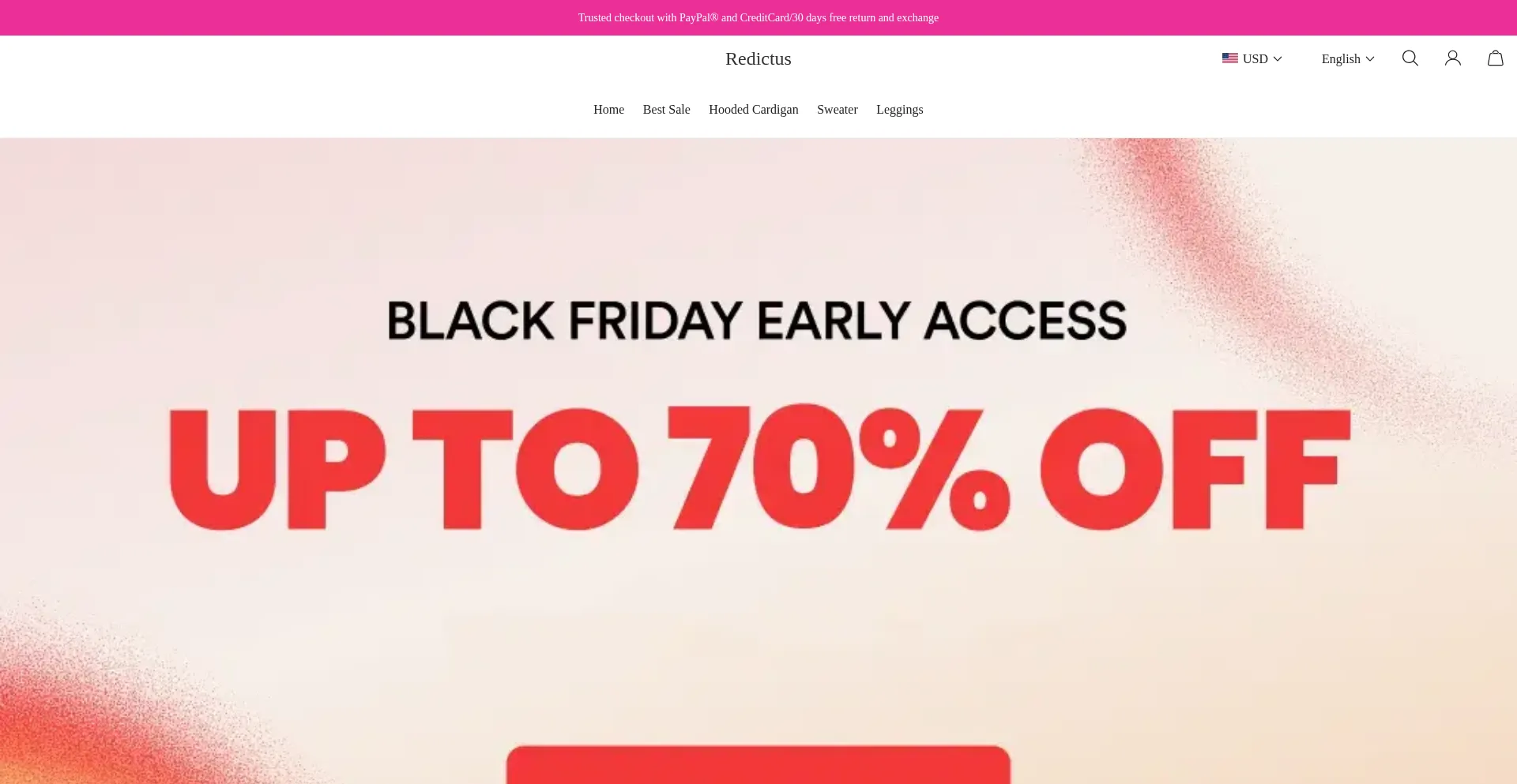 Analysis indicates that redictus.com operates as an e-commerce platform facilitating online transactions for goods or services. The website implements shopping cart functionality, payment processing systems, and product catalog features typical of commercial retail operations.