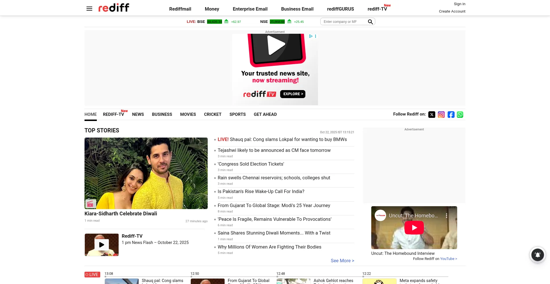 ✔Read Latest India News ✔Get Realtime Stock Quotes ✔See Live Cricket Scores ✔Log in to Rediffmail ✔Expert advice on career, personal finance and relationships