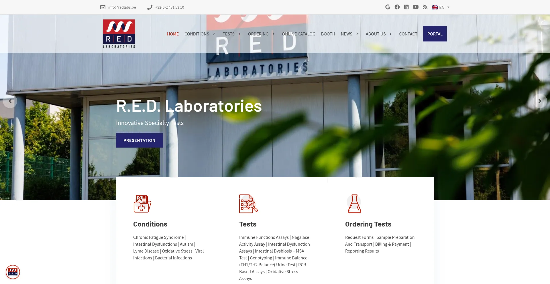R.E.D. Laboratories is a private Belgian company, focused on developing and performing specialty research and diagnostic tests for chronic immune disorders, intestinal dysfuncti...