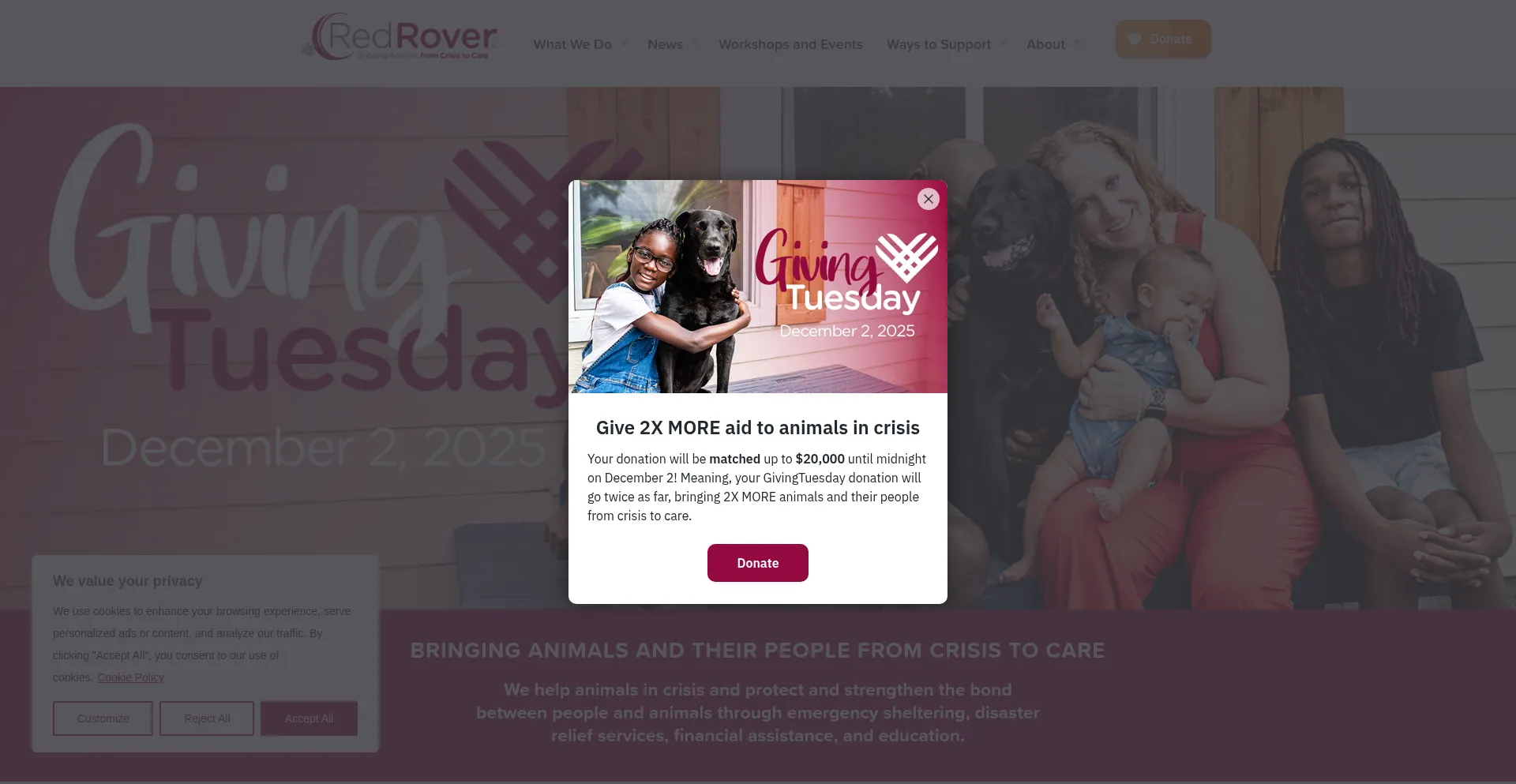 The website implements cookie consent mechanisms in compliance with privacy regulations such as GDPR or CCPA. This demonstrates that redrover.org adheres to data protection standards and provides users with control over personal data collection practices.