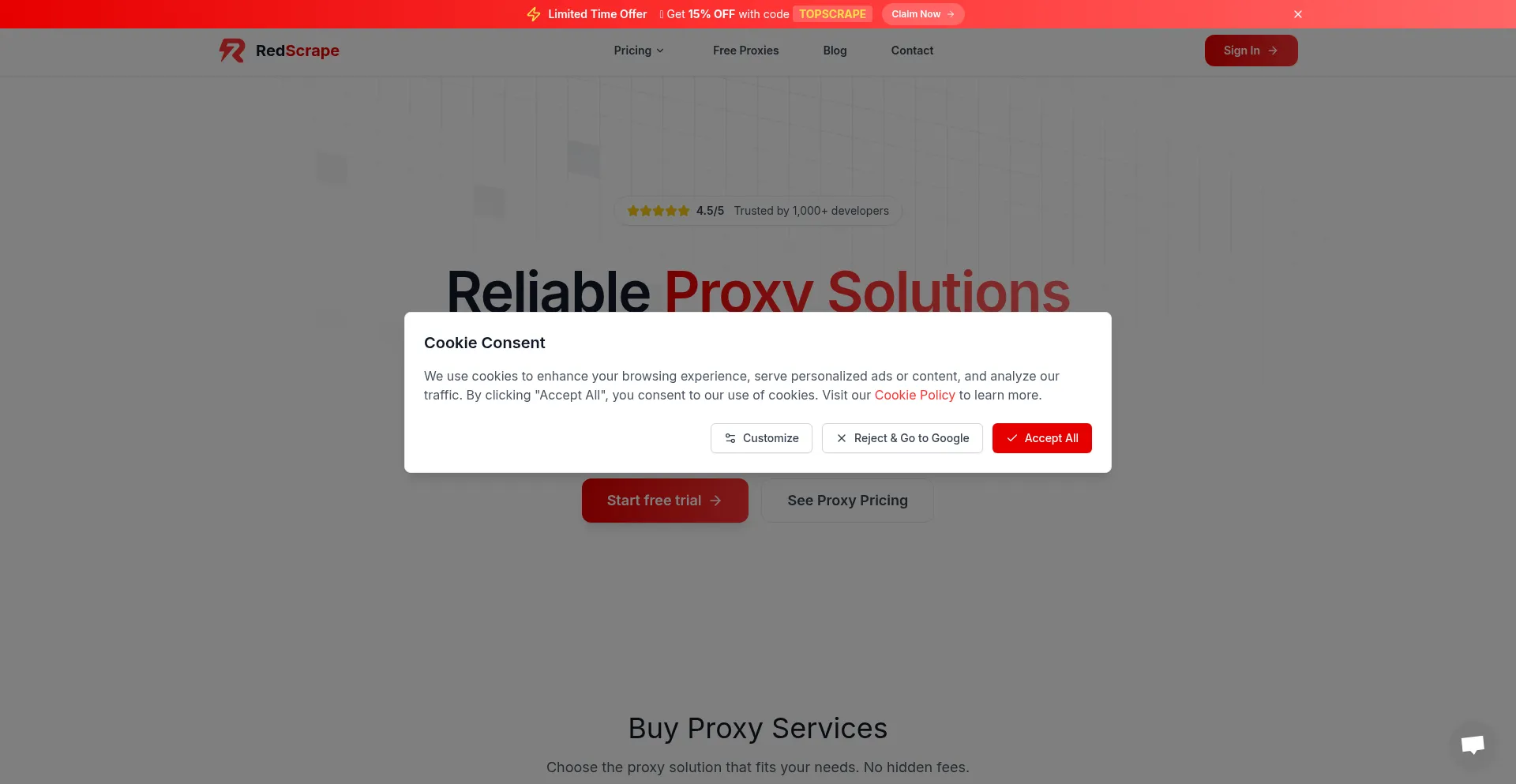 The website implements cookie consent mechanisms in compliance with privacy regulations such as GDPR or CCPA. This demonstrates that redscrape.com adheres to data protection standards and provides users with control over personal data collection practices.