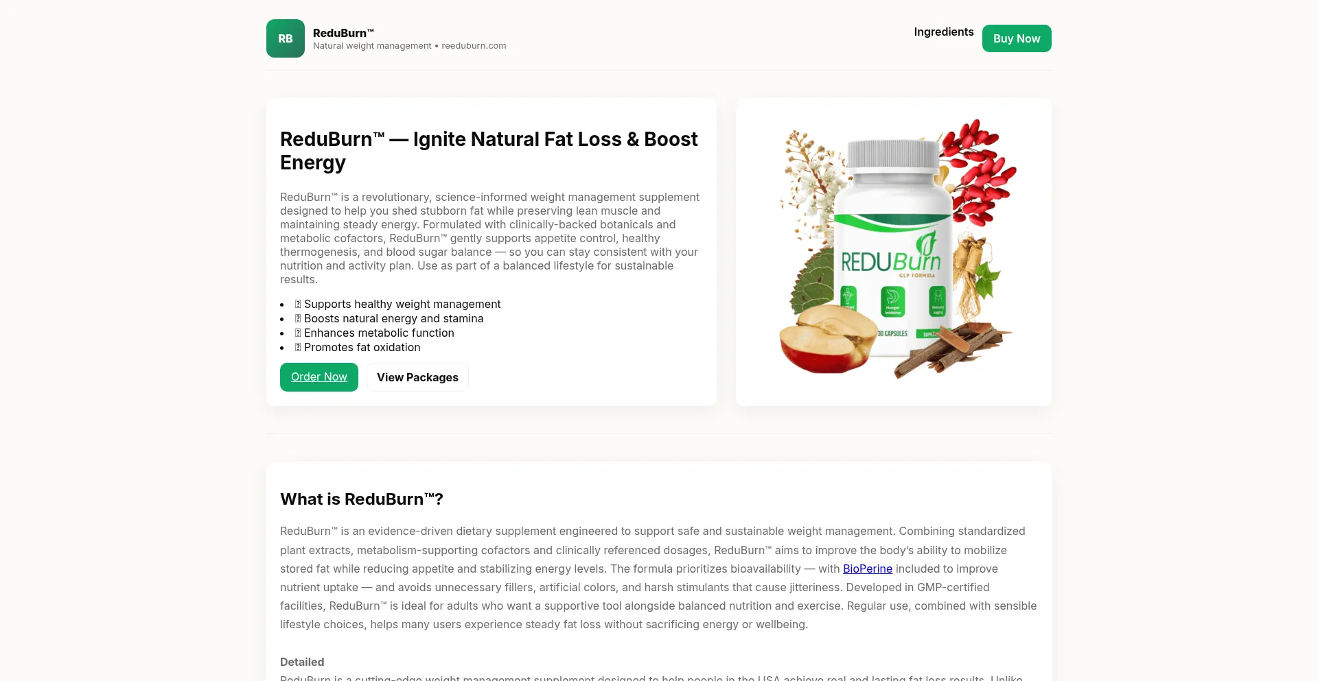 ReduBurn™ is a clinically-inspired, natural weight management supplement that supports metabolism, appetite control and sustained energy. Discover ingredients, benefits, prici...