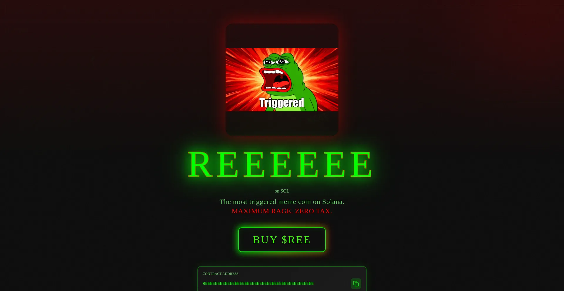 REEEEEE! The most triggered meme coin on Solana. Zero tax, LP burned, contract renounced. Join the rage!