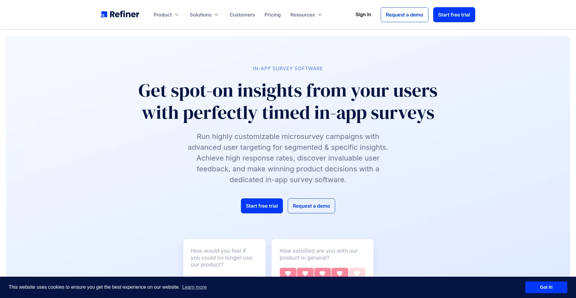Refiner: In-app survey software | Web app surveys, mobile app surveys, and more.