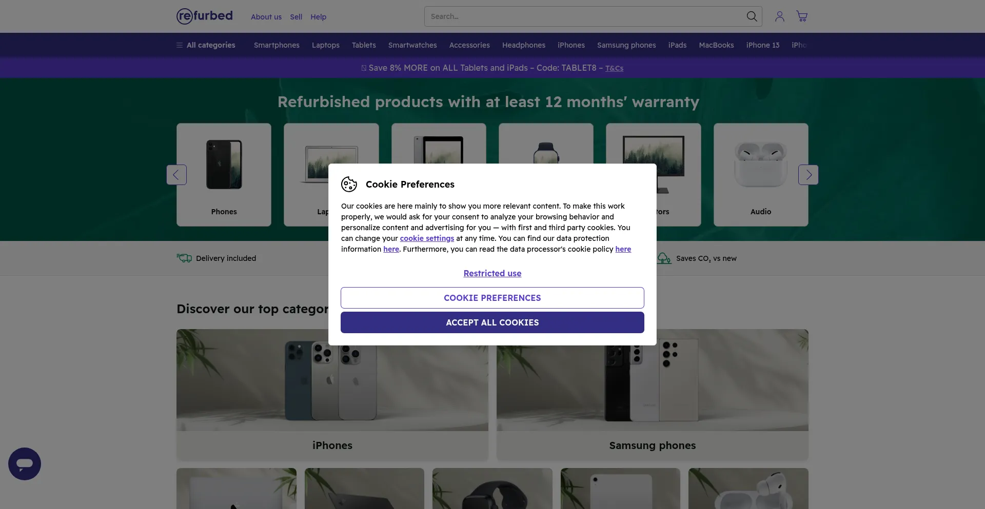 The website implements cookie consent mechanisms in compliance with privacy regulations such as GDPR or CCPA. This demonstrates that refurbed.ie adheres to data protection standards and provides users with control over personal data collection practices.