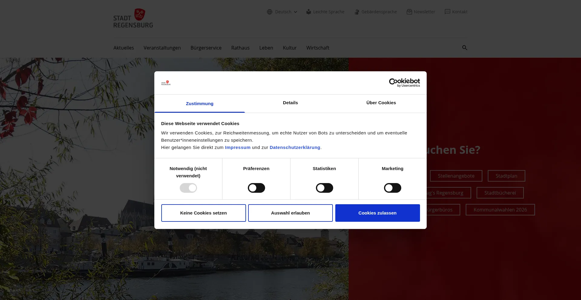 The website implements cookie consent mechanisms in compliance with privacy regulations such as GDPR or CCPA. This demonstrates that regensburg.de adheres to data protection standards and provides users with control over personal data collection practices.