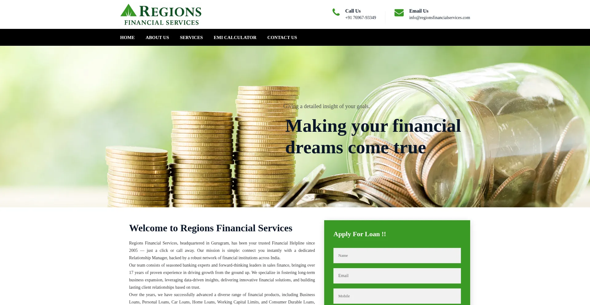 Regions Financial Services was created to be a Financial Loan Services in Gurugram thats just a click away. Our mission is to provide you with a Relationship Manager who represe...