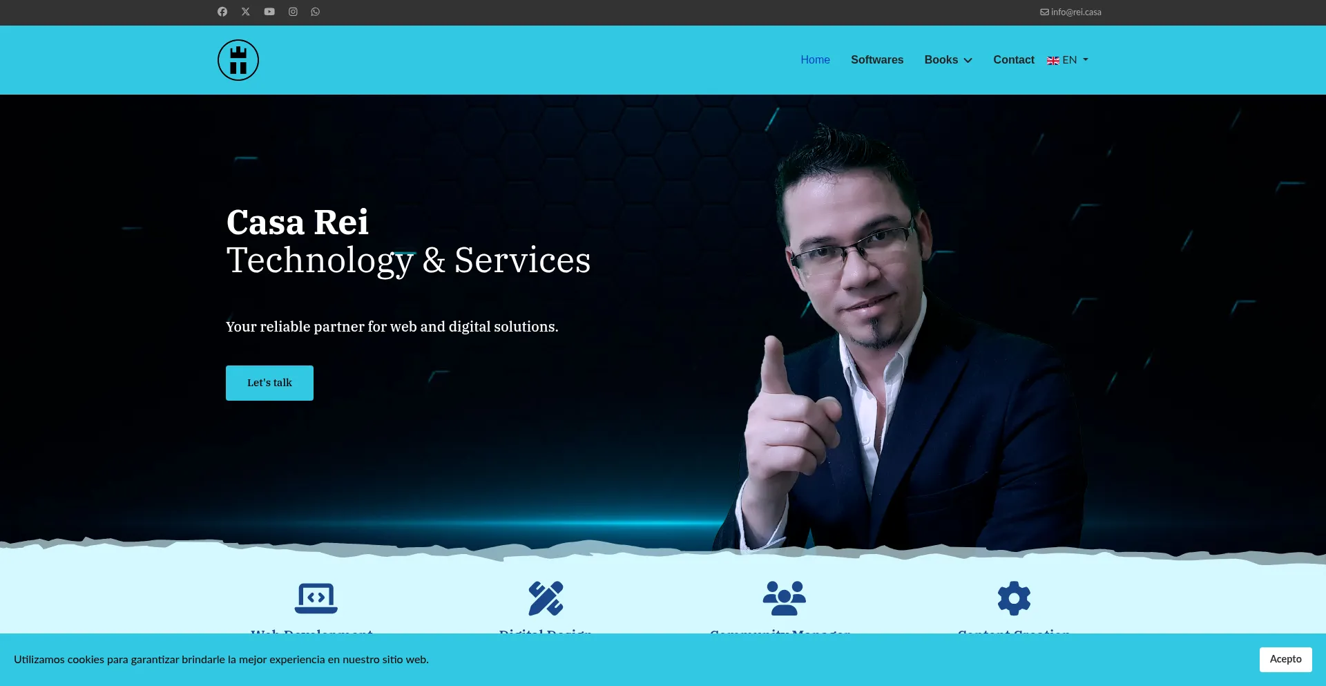 rei.casa uses Bootstrap, a widely-adopted open-source framework for responsive web development. Bootstrap enables efficient creation of mobile-friendly interfaces through standardized components and styling.