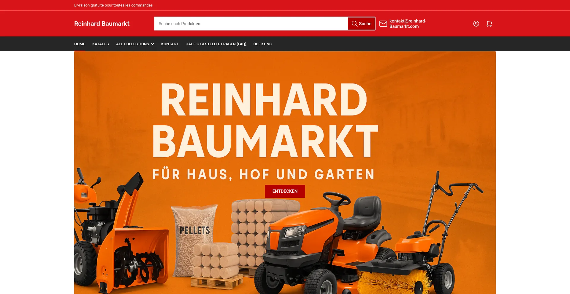 The reinhard-baumarkt.com website utilizes free e-commerce platform solutions, which may indicate cost-conscious operations but could also suggest limitations in security features, customer support, or advanced functionality compared to enterprise-grade solutions.
