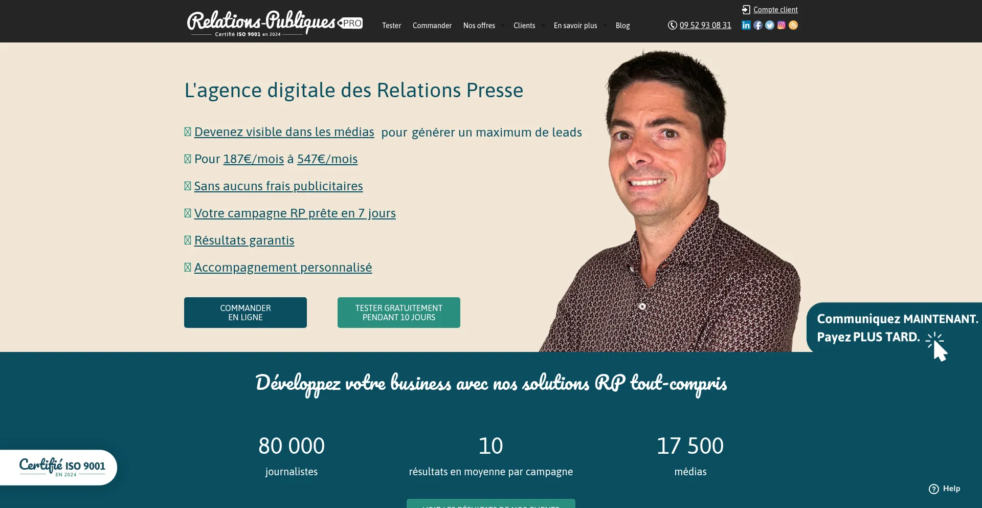 Relations-Publiques.Pro : Agence RP & Attachée de presse | Agence de Relations Presse Test gratuit 10 jours Dès 117€ HT/mois