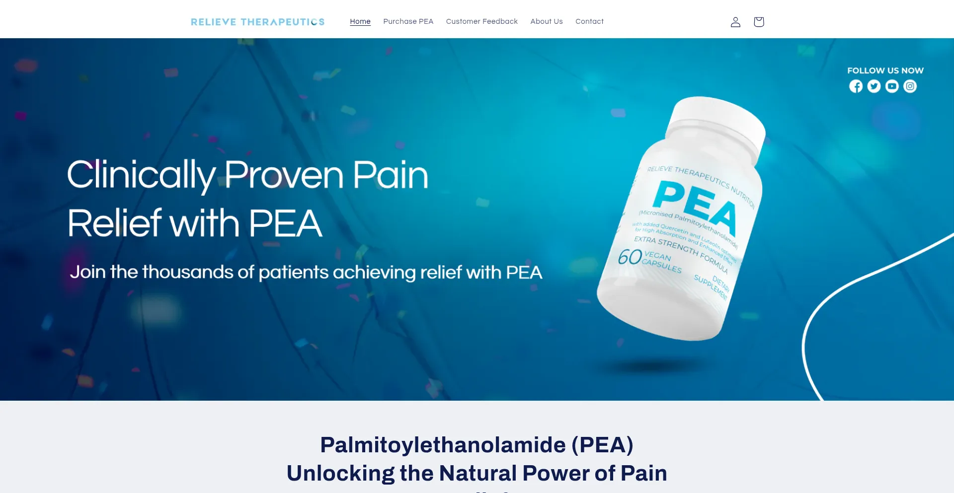 Discover effective chronic pain relief with our Palmitoylethanolamide (PEA) capsules. Experience natural comfort from Relieve Therapeutics. Try it now