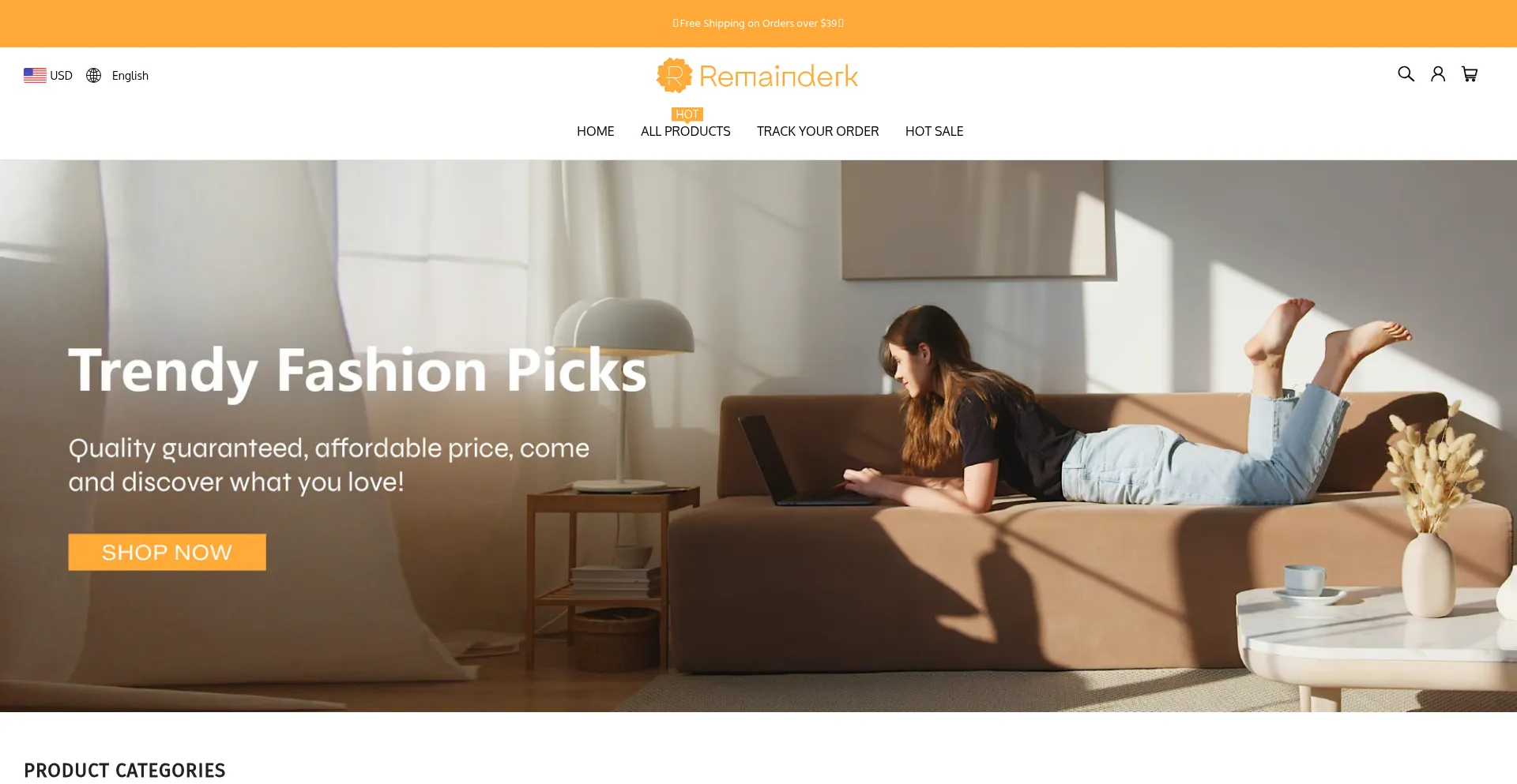Analysis indicates that remainderk.com operates as an e-commerce platform facilitating online transactions for goods or services. The website implements shopping cart functionality, payment processing systems, and product catalog features typical of commercial retail operations.