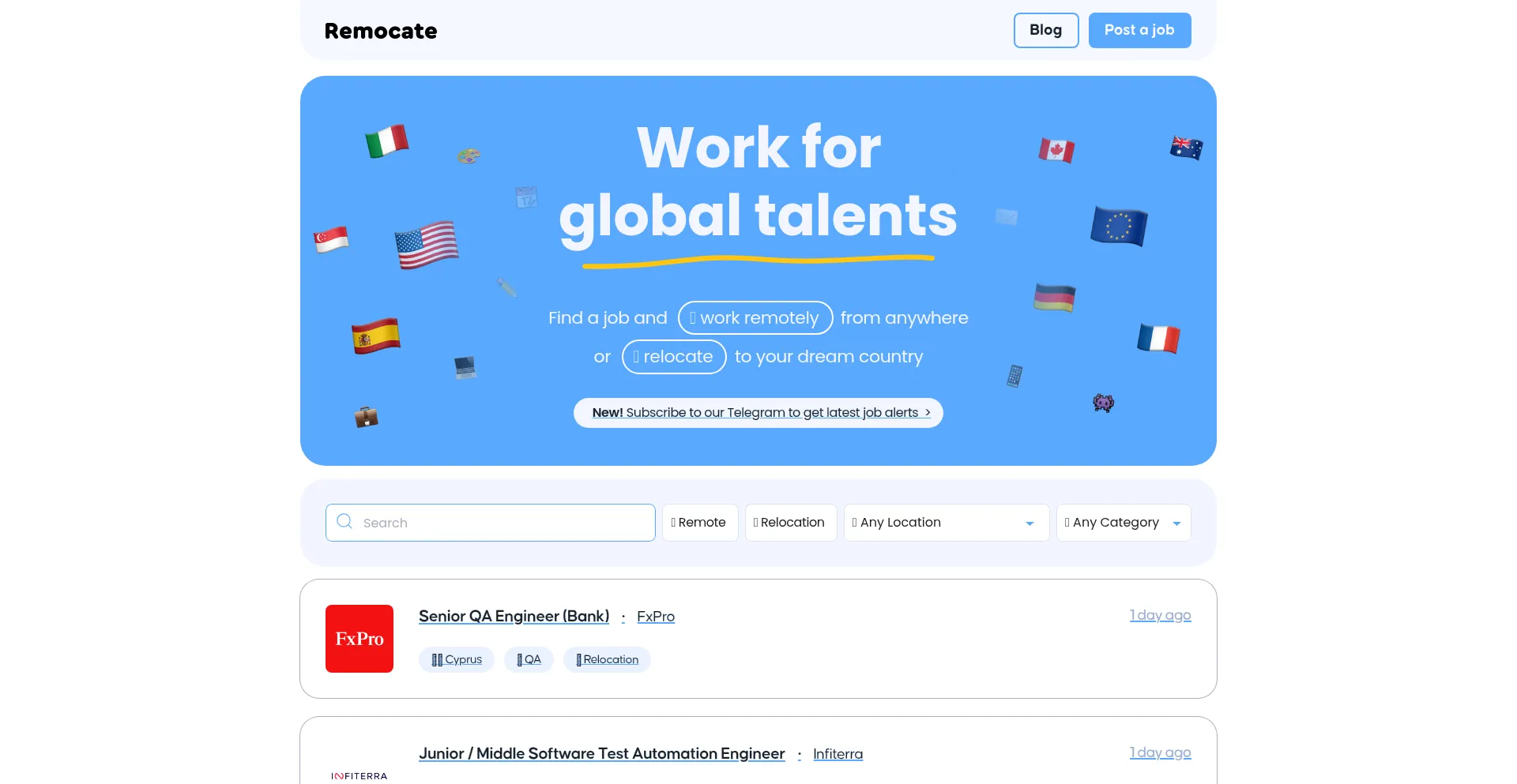 Find a job and work remotely from anywhere or relocate to your dream country. Explore hundreds of companies hiring digital nomads and migrants on Remocate.