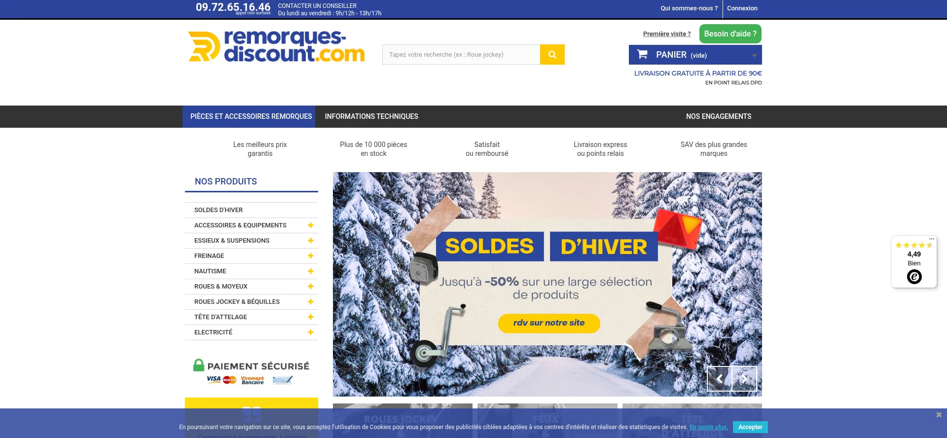 remorques-discount.com has a good Trustpilot score (4.4) based on 1493 reviews, indicating a high level of trust from customers. It is a good sign of legitimacy!