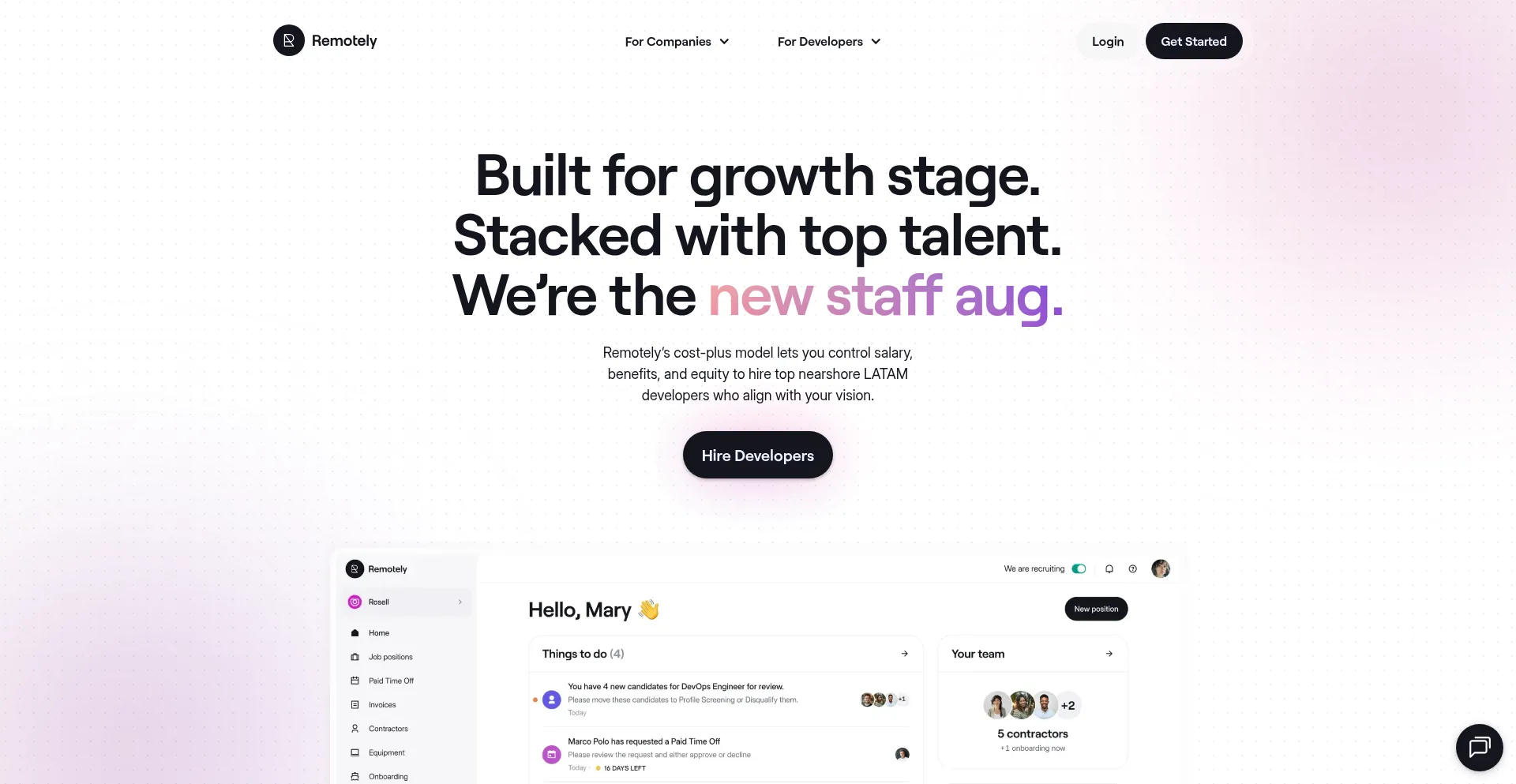 Remotely helps US startups hire and retain high-performing, remote software engineers to scale faster and more competitively.