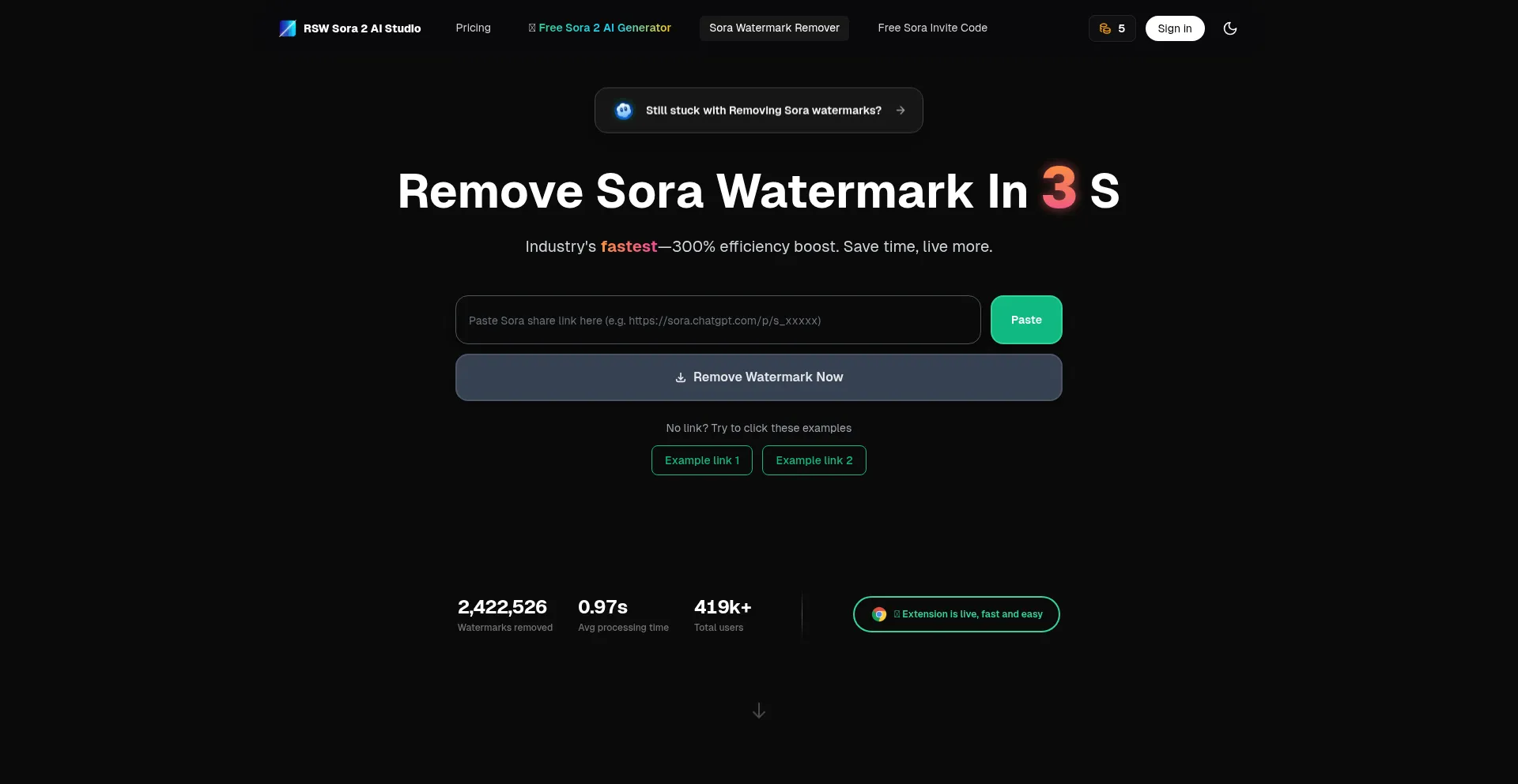 Paste your Sora share link and get a clean MP4 in 3 seconds. Built for creators who need a fast, reliable watermark removal flow.