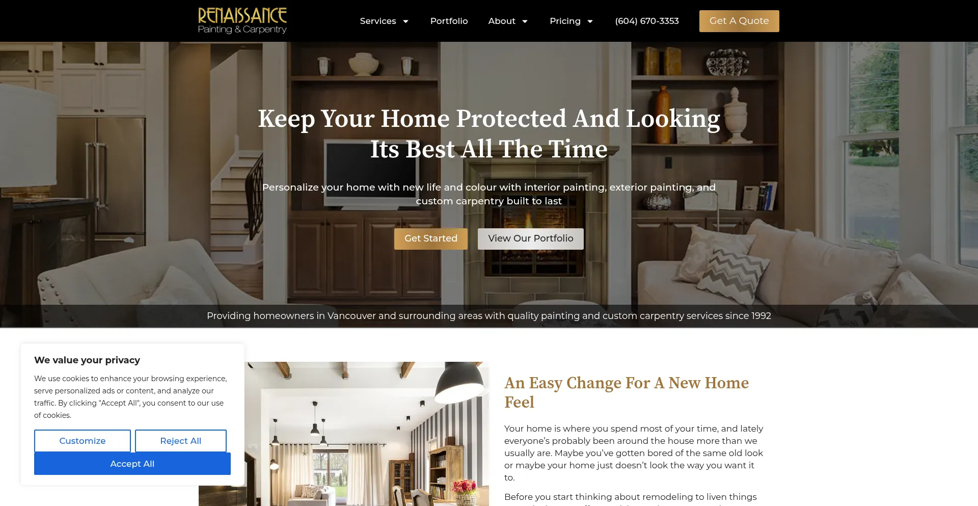 The website implements cookie consent mechanisms in compliance with privacy regulations such as GDPR or CCPA. This demonstrates that renaissancepainting.ca adheres to data protection standards and provides users with control over personal data collection practices.