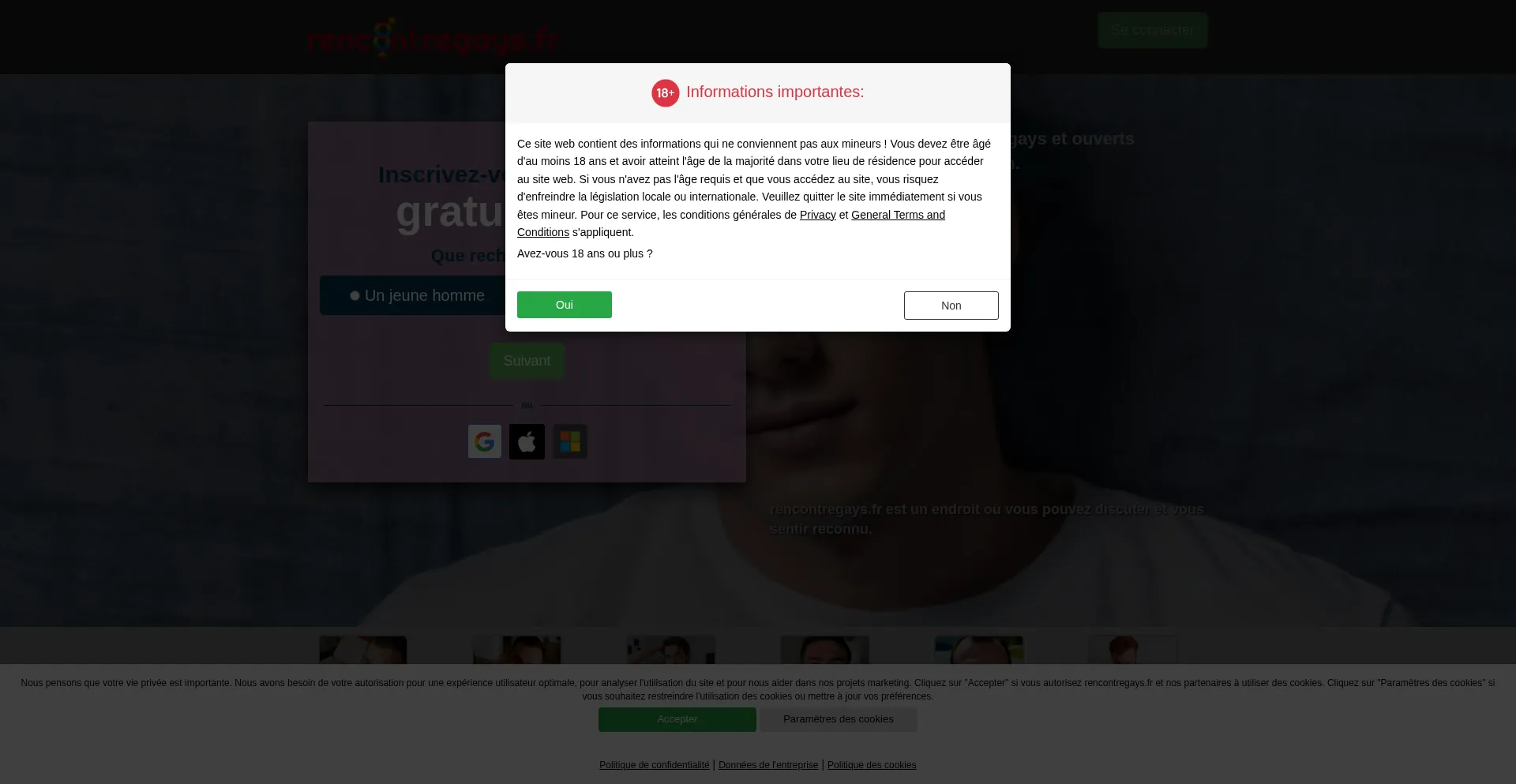The website implements cookie consent mechanisms in compliance with privacy regulations such as GDPR or CCPA. This demonstrates that rencontregays.fr adheres to data protection standards and provides users with control over personal data collection practices.