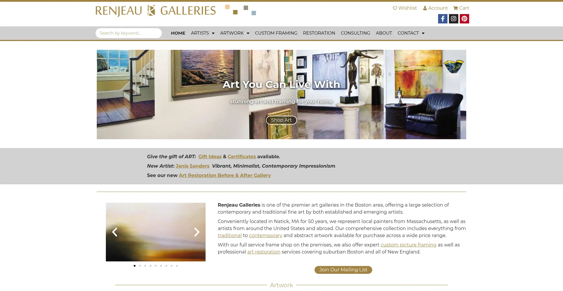 Located in Natick, Massachusetts, Renjeau Galleries and Custon Framing is one of the premier art galleries in the Boston area. We offer a large selection of traditional and cont...