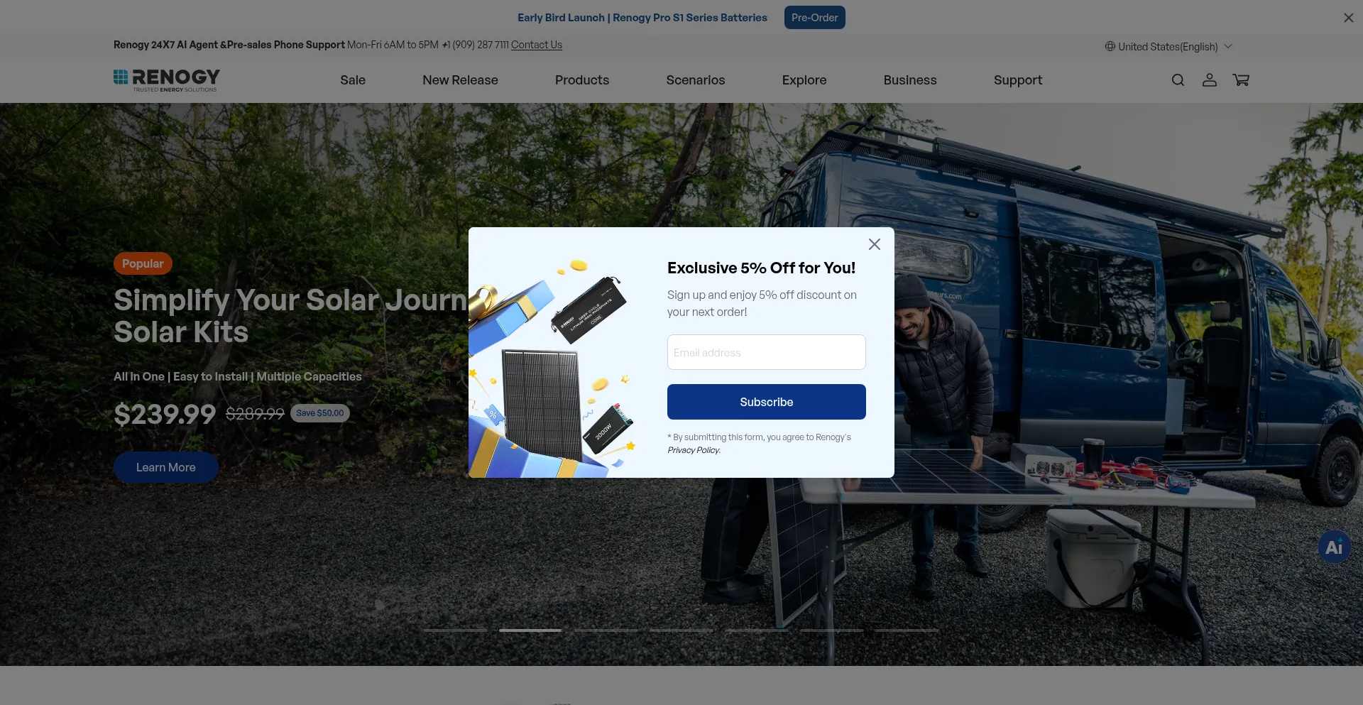 Renogy provides top-tier solar panels, lithium batteries, inverters, and complete power systems. Perfect for home backup, RVs, and sustainable living. Find your solution today!